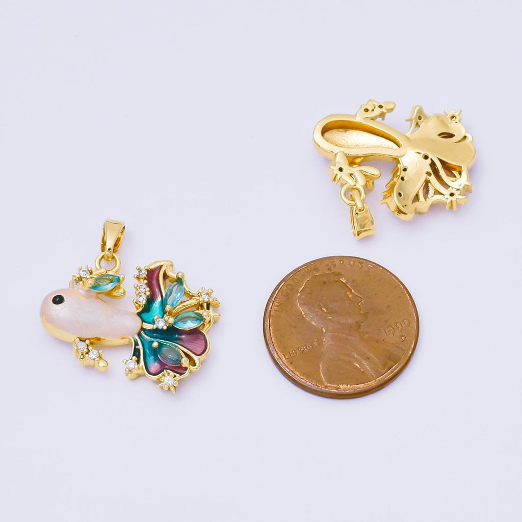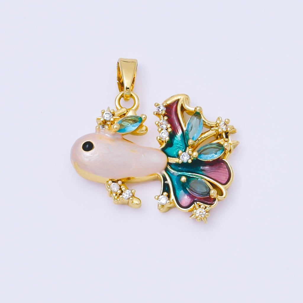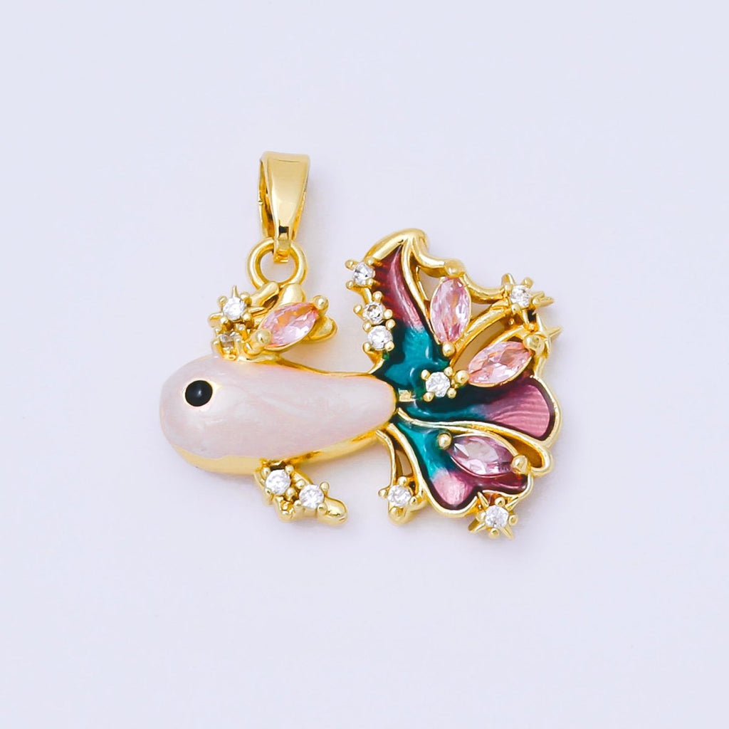 24K Gold Filled 17mm Teal, Pink Marquise CZ Enamel Ornament Fish Pendant | AA1625 AA1626