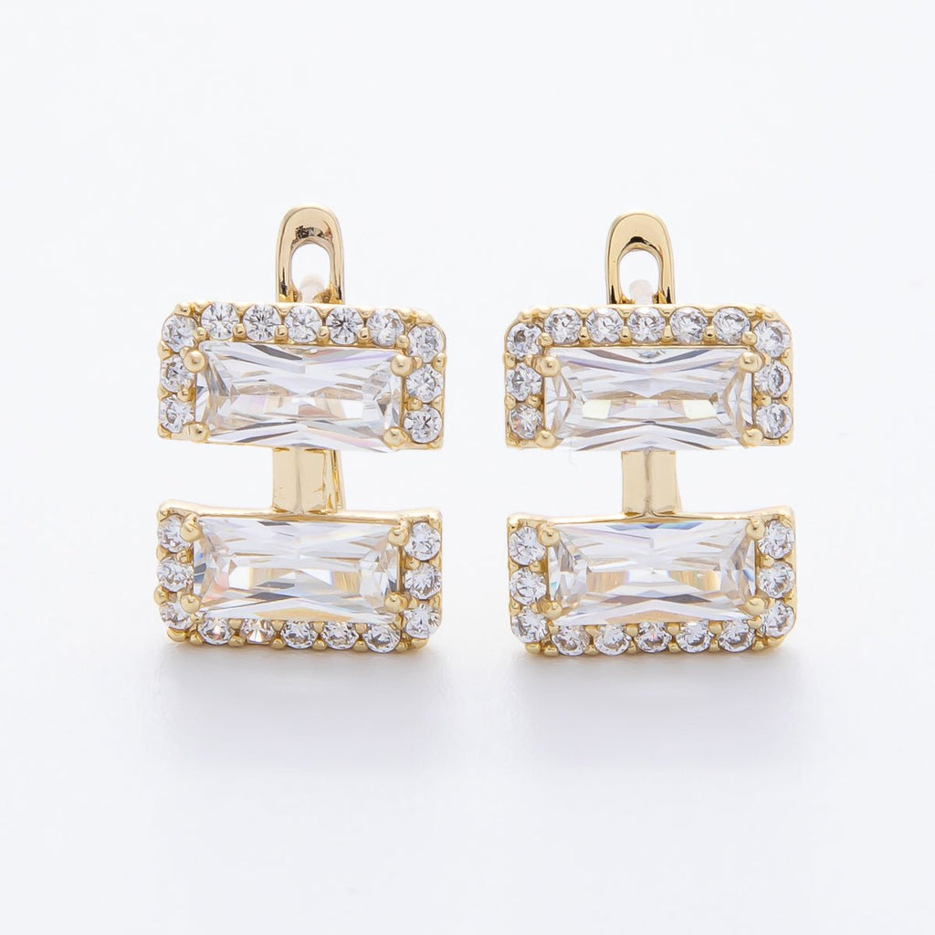 14K Gold Filled 14mm Clear Baguette Micro Paved CZ English Lock Hoops Earrings | AJ243