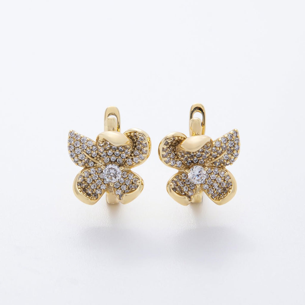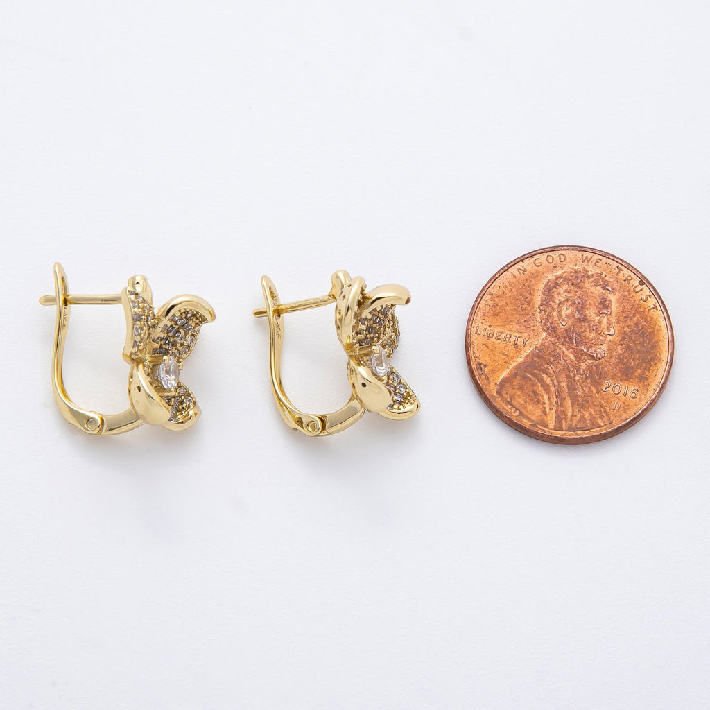 14K Gold Filled 16mm Micro Paved CZ Flower English Lock Hoop Earrings | AJ245