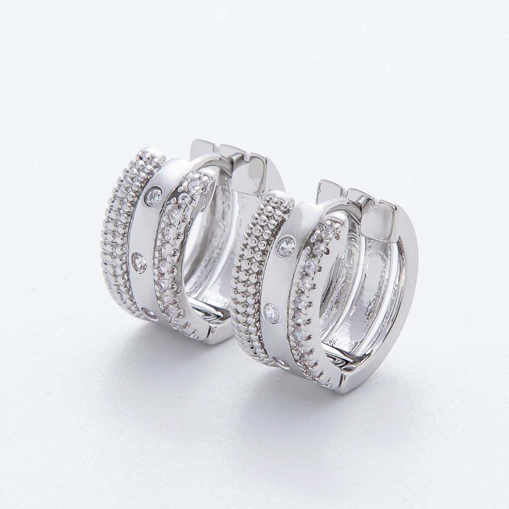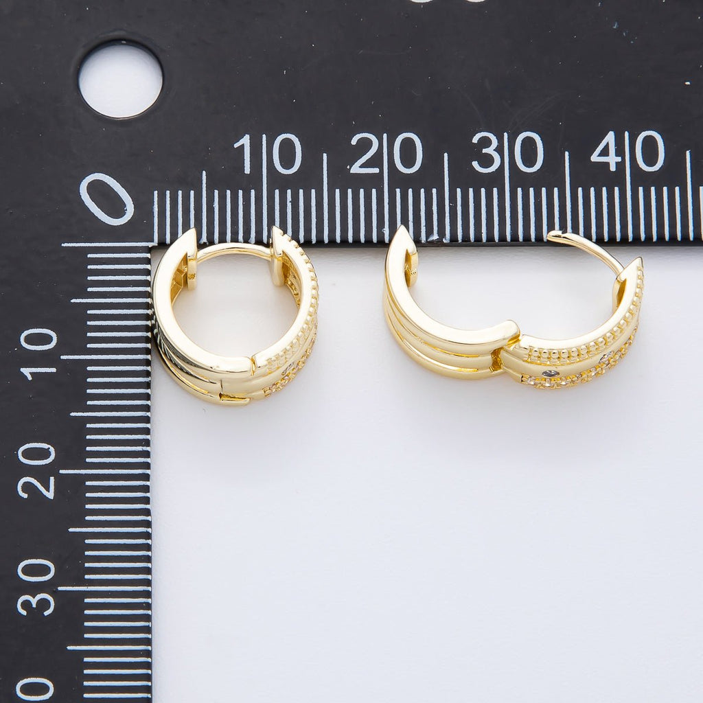 14K Gold Filled Micro Paved CZ Triple Theme Huggie Hoops Earrings | AJ226 AJ227
