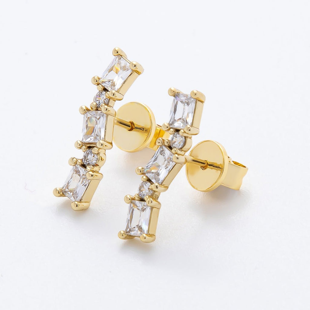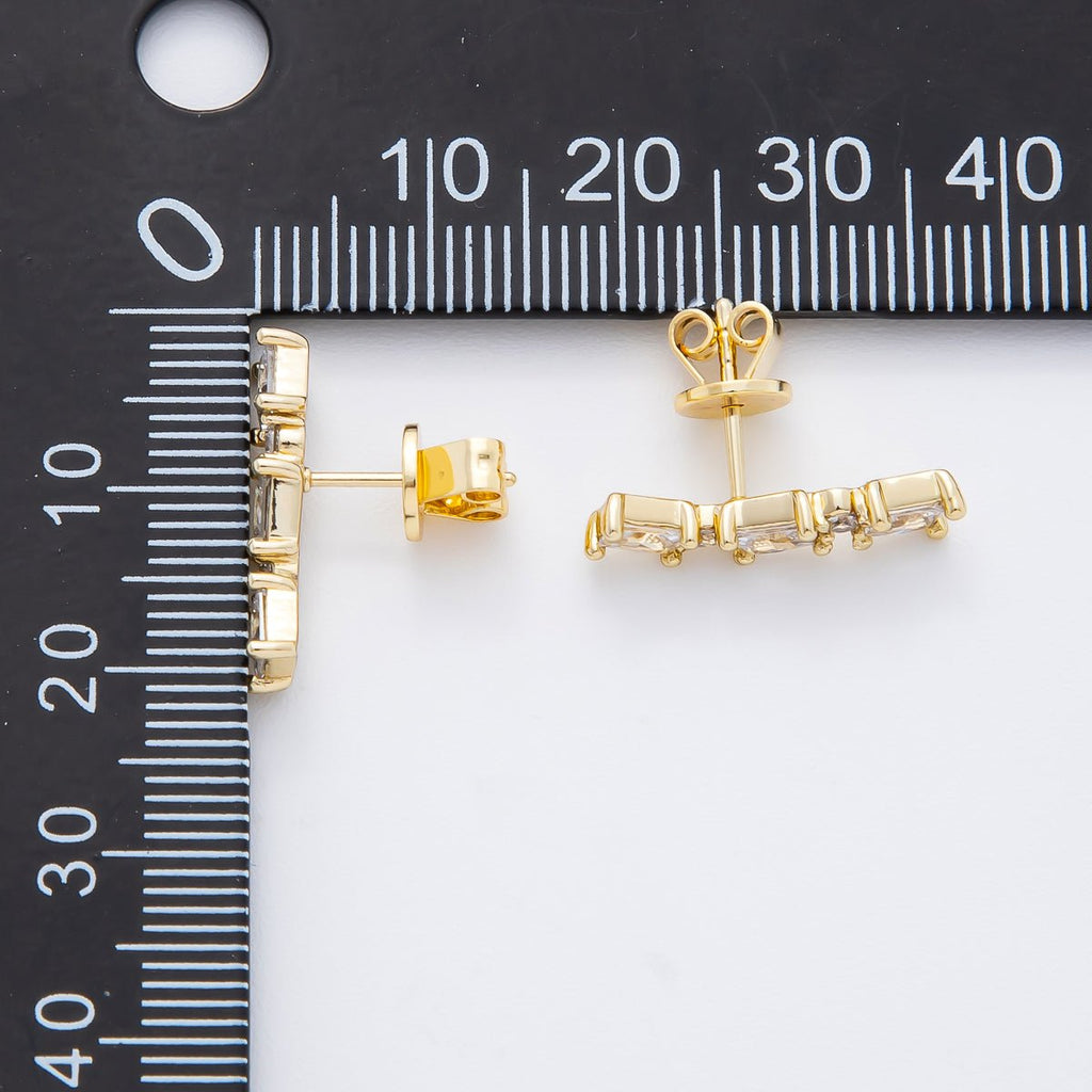 14K Gold Filled Clear Baguette Round Geometric Linear Drop Stud Earrings | AJ235