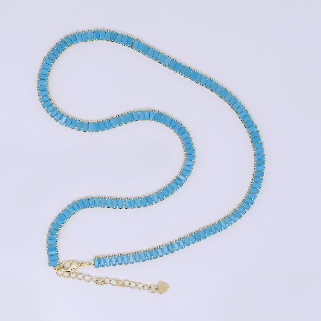 24K Gold Filled 5mm Blue Turquoise Baguette 16 Inch Tennis Chain Necklace | WA-2323