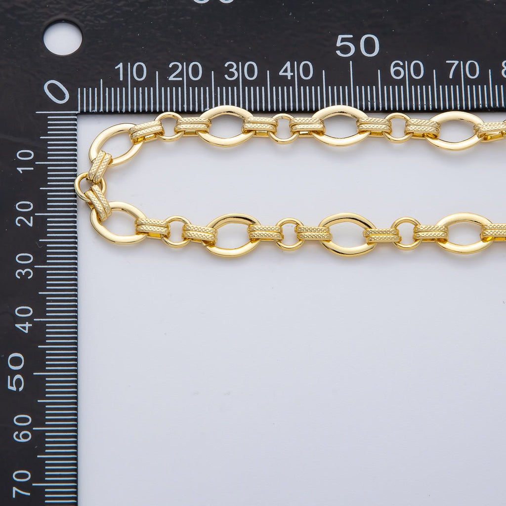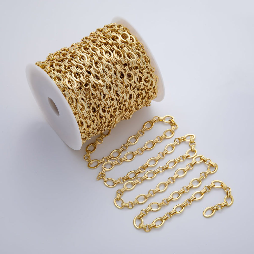 18K Gold Filled 11mm x 8mm Geometric Cable Quilted Double Link Unfinished Chain by Yard | Roll-1772