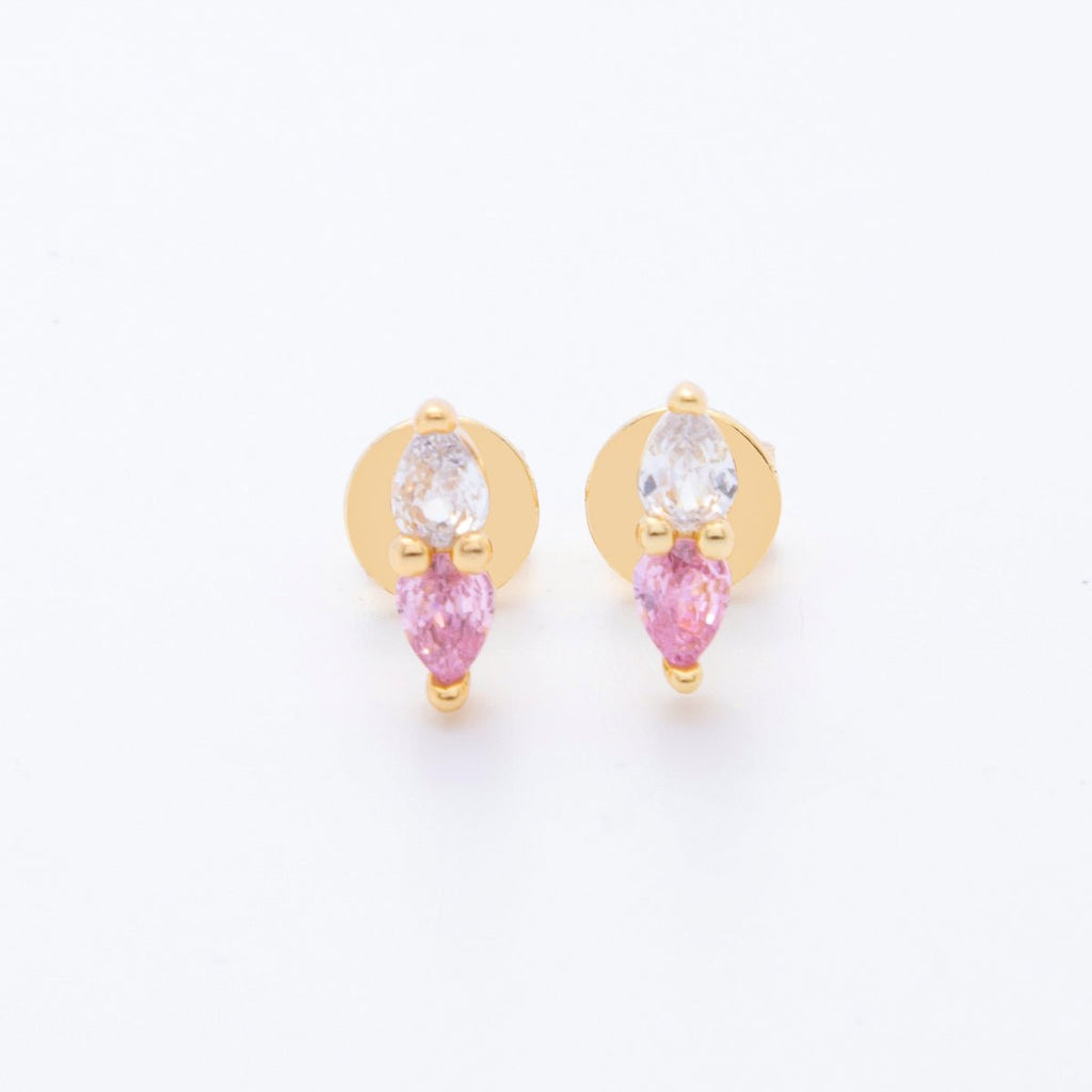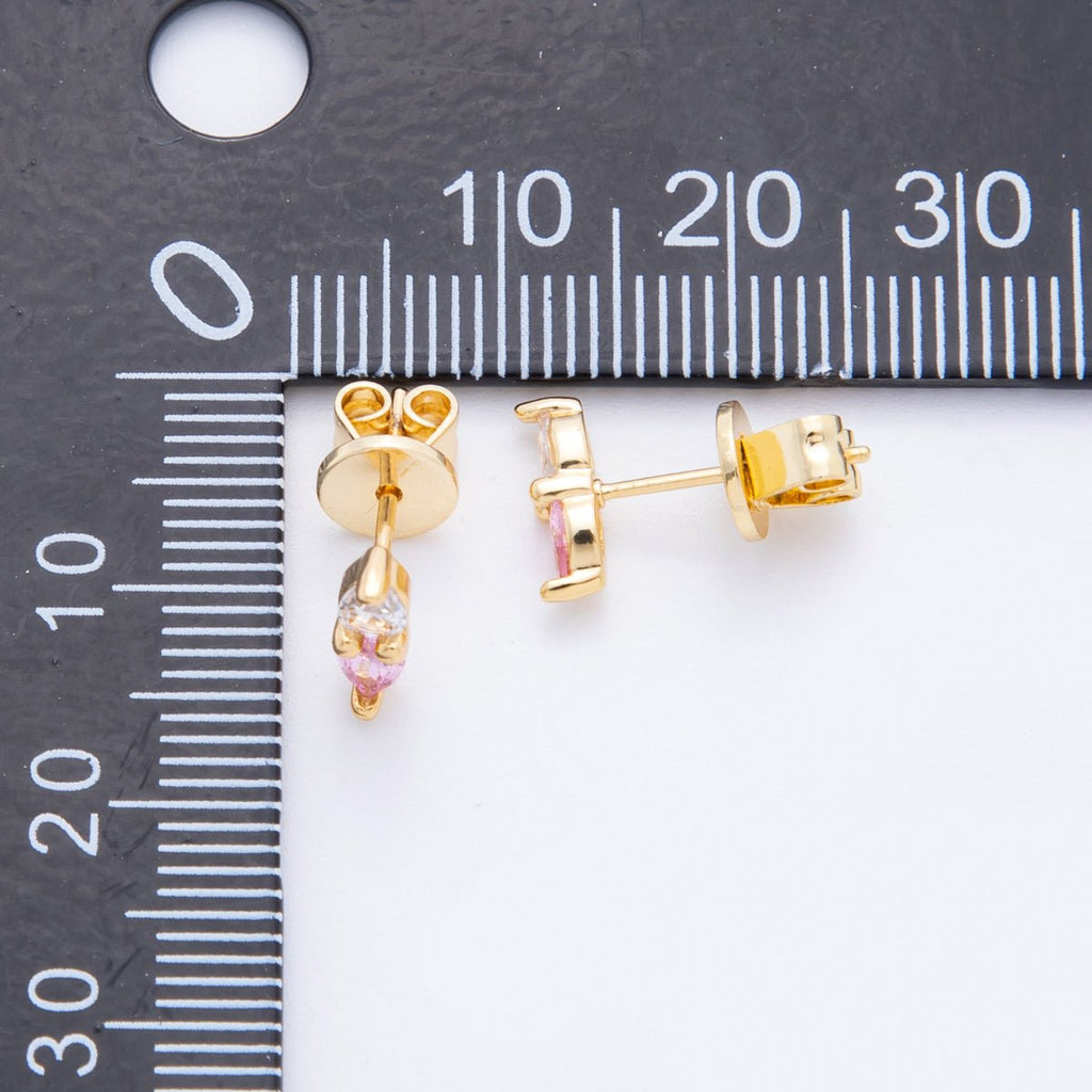 18K Gold Filled 10mm Pink, Purple CZ Inverted Teardrop Dainty Stud Earrings | AJ275 AJ276