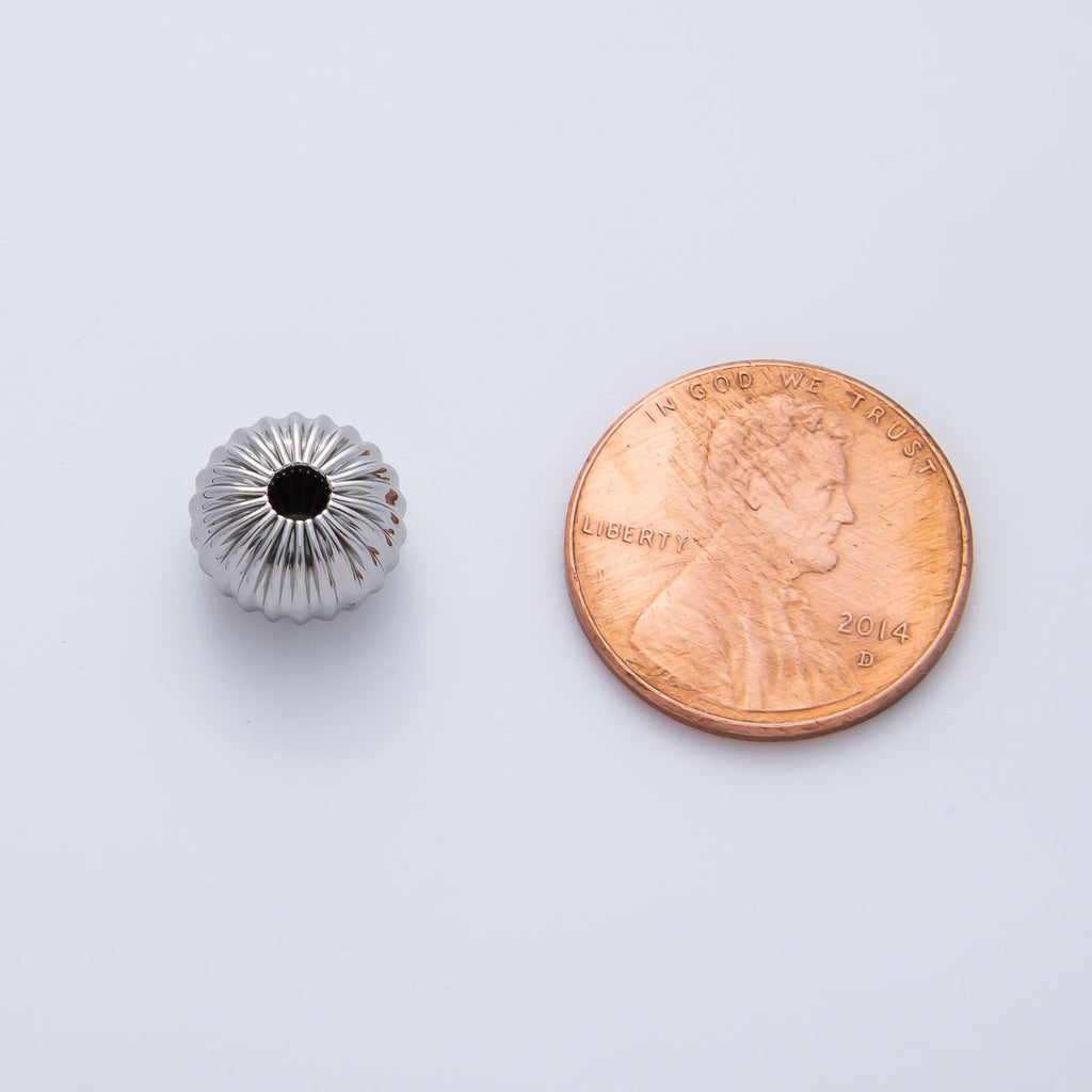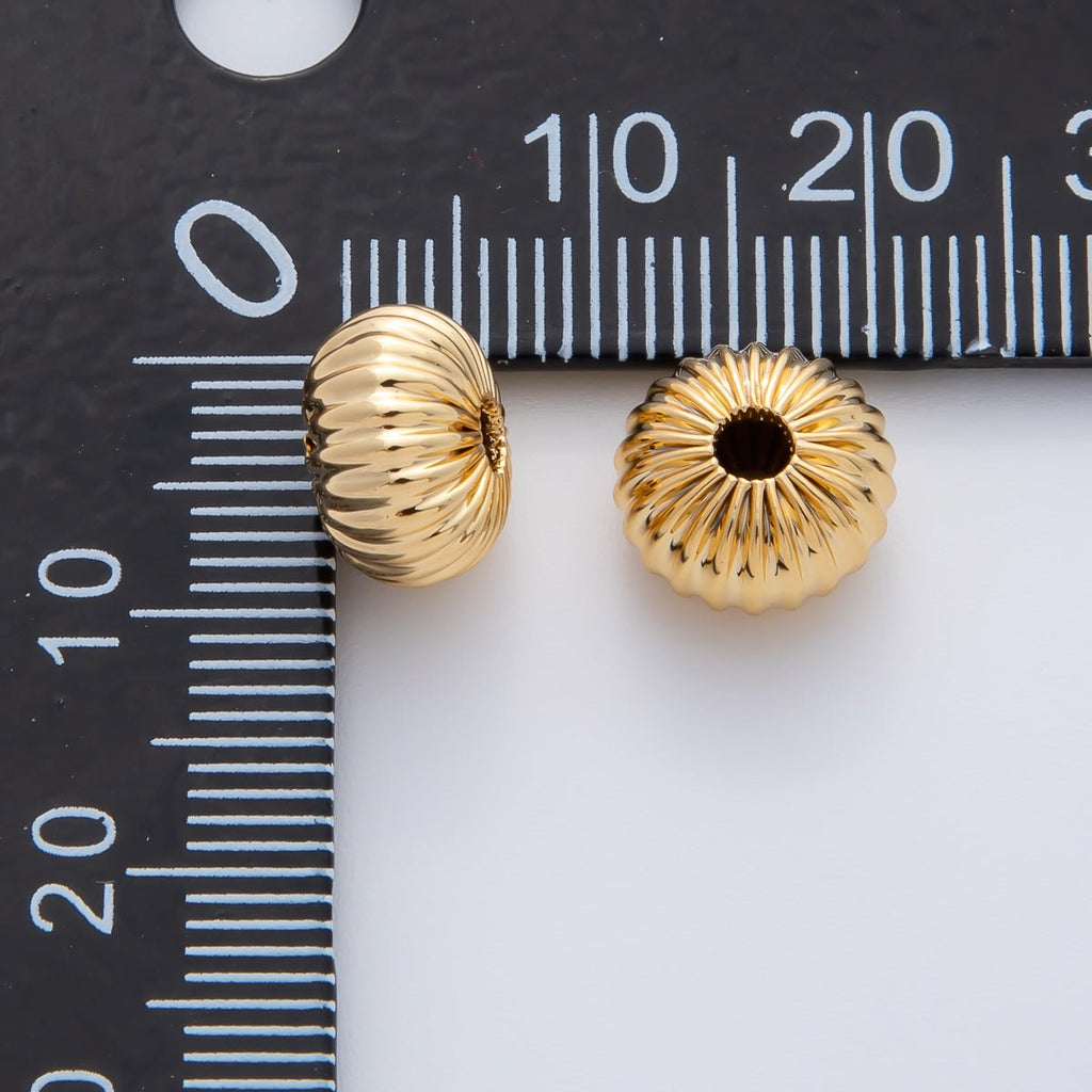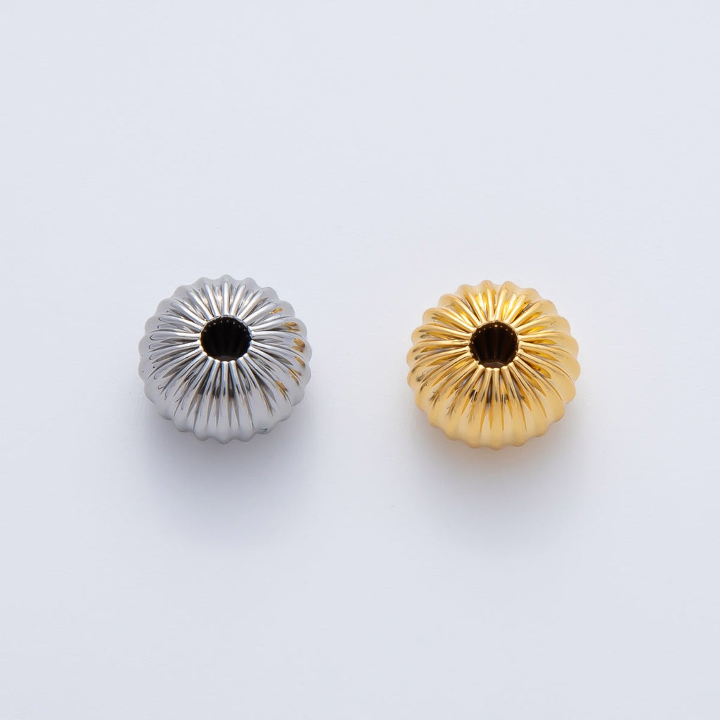 18K Gold Filled 10mm Ribbed Croissant Rondelle Bead in Gold & Silver | B348