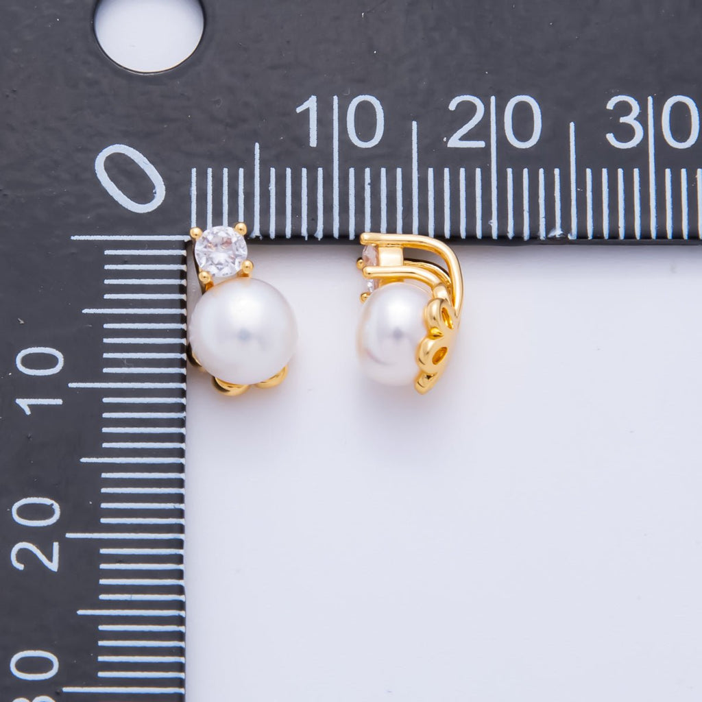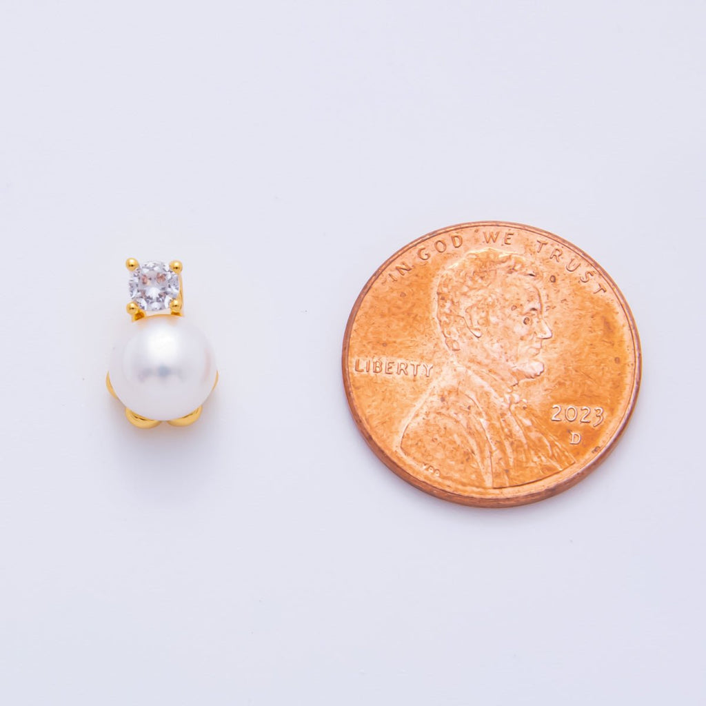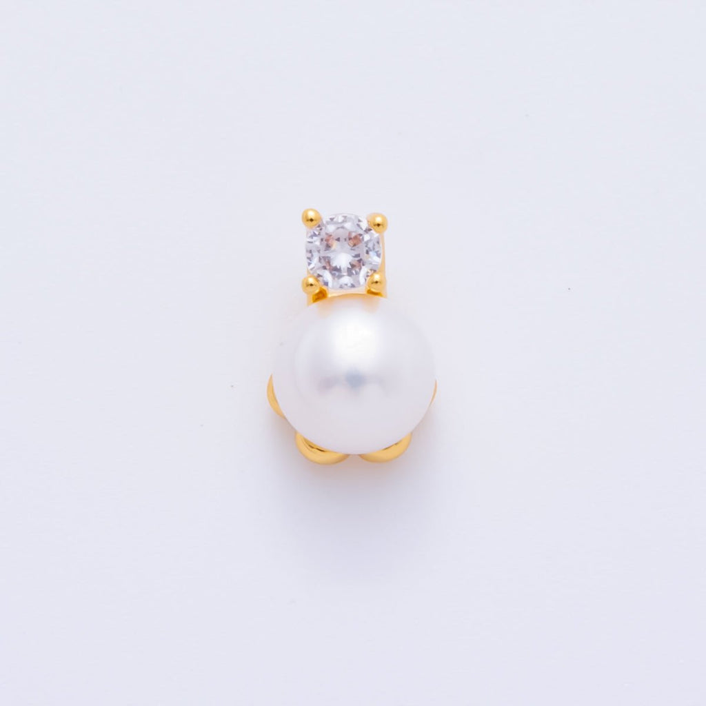 18K Gold Filled 10mm Square CZ Shell Pearl Vintage Bridal Wedding Charm | AF-A1310