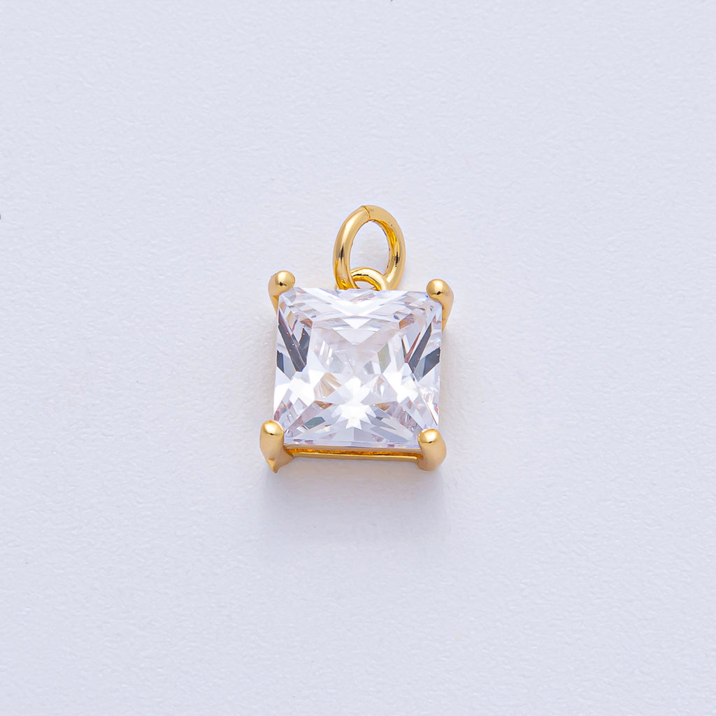 18K Gold Filled 11mm Clear CZ Square Baguette Mini Charm | AK036