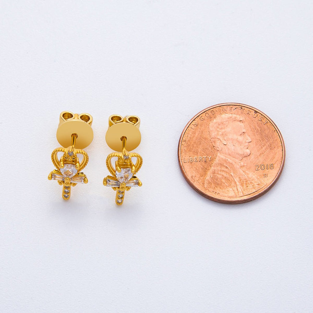 18K Gold Filled 11mm Heart-Shaped CZ Fairy Magic Wand Heart Studs Earrings | AD1573