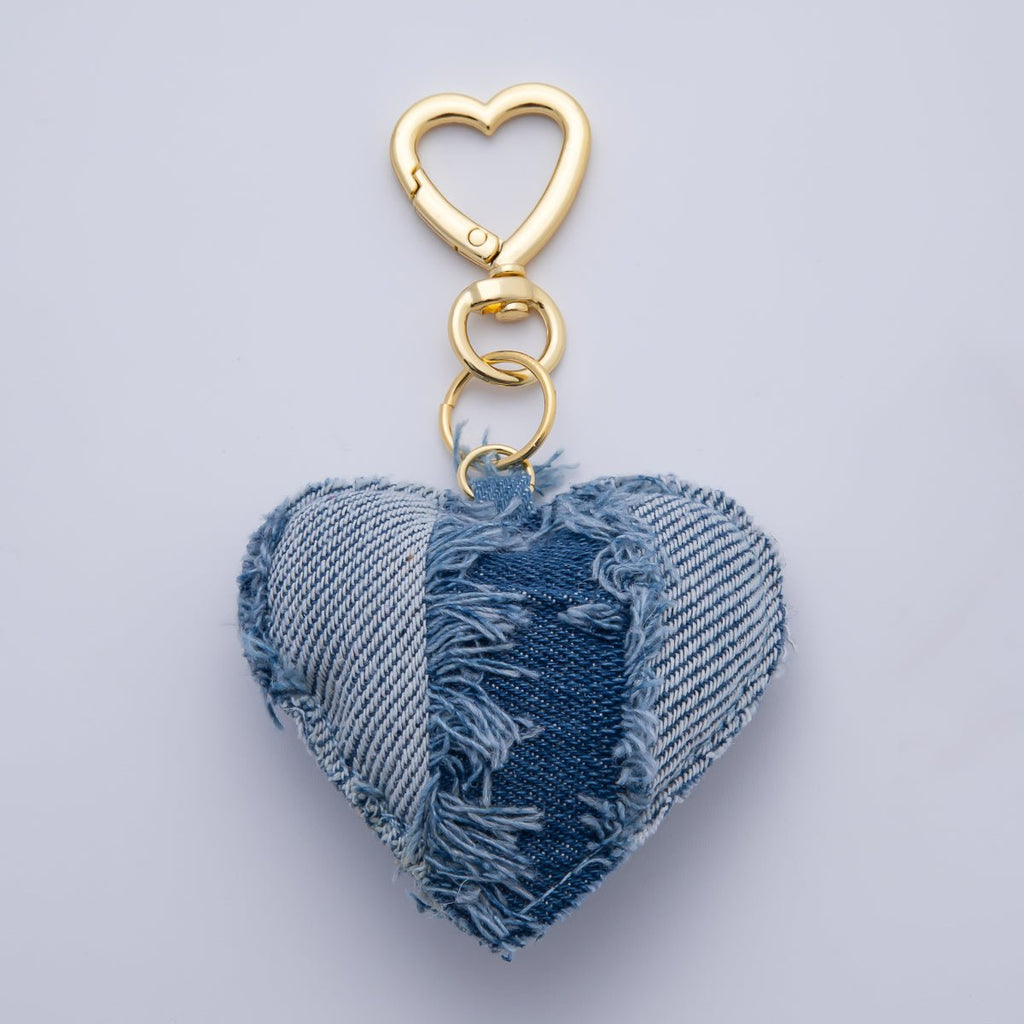 18K Gold Filled Blue Denim Puffy Heart Push Gate King Ring Keychain Accessories | AB-00145 ~ WB-00147