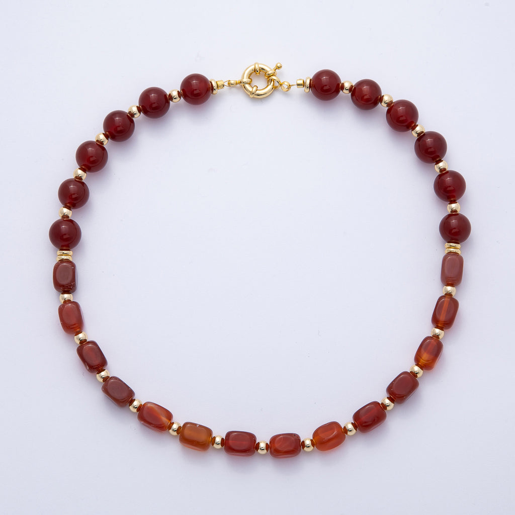 18K Gold Filled 12mm Red Carnelian Pebble Round Bead 18 Inch Necklace w. Sailor Clasps | WA-4134