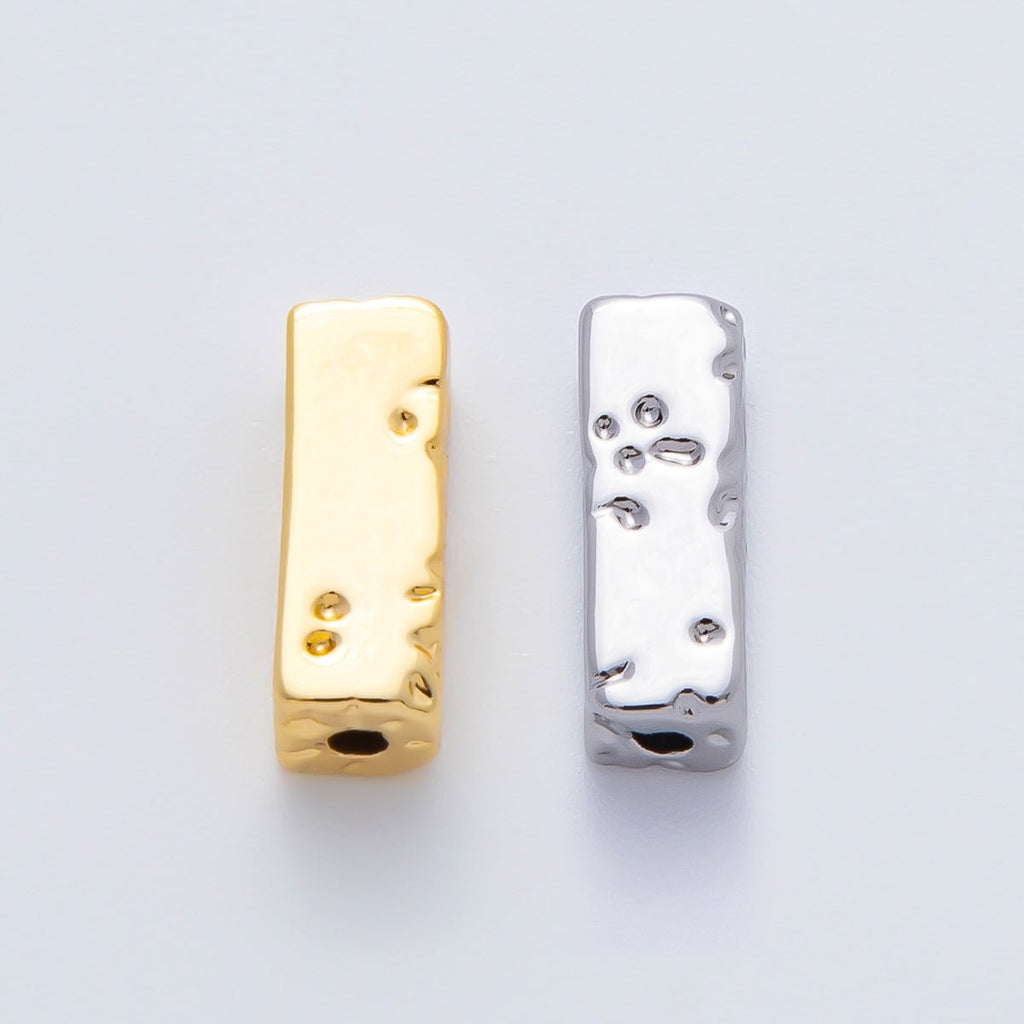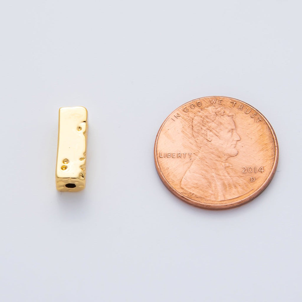 18K Gold Filled 13mm Hammered Rectangular Tube Spacer Bead in Gold & Silver | B026