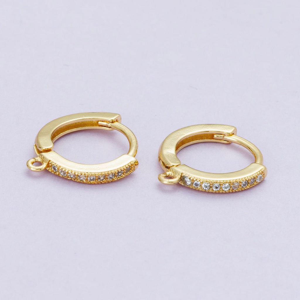 18K Gold Filled 13mm Micro Paved CZ Open Loop Drop Huggie Earrings | Findings-00104
