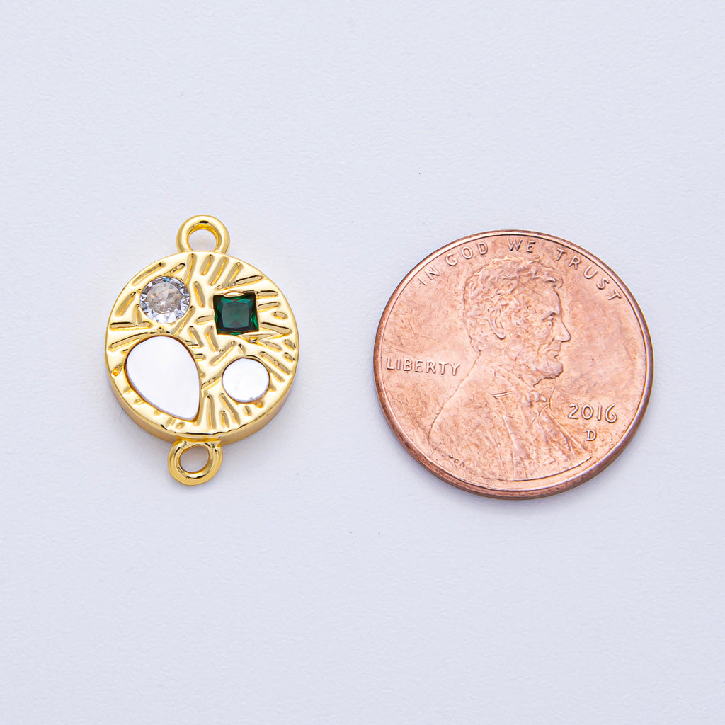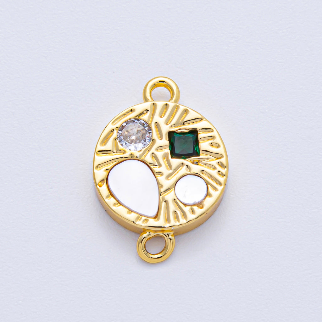 18K Gold Filled 13mm Multicolor CZ Shell Pearl Geometric Textured Round Connector | Y170