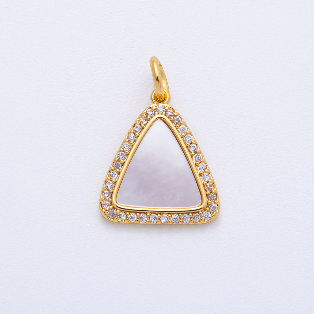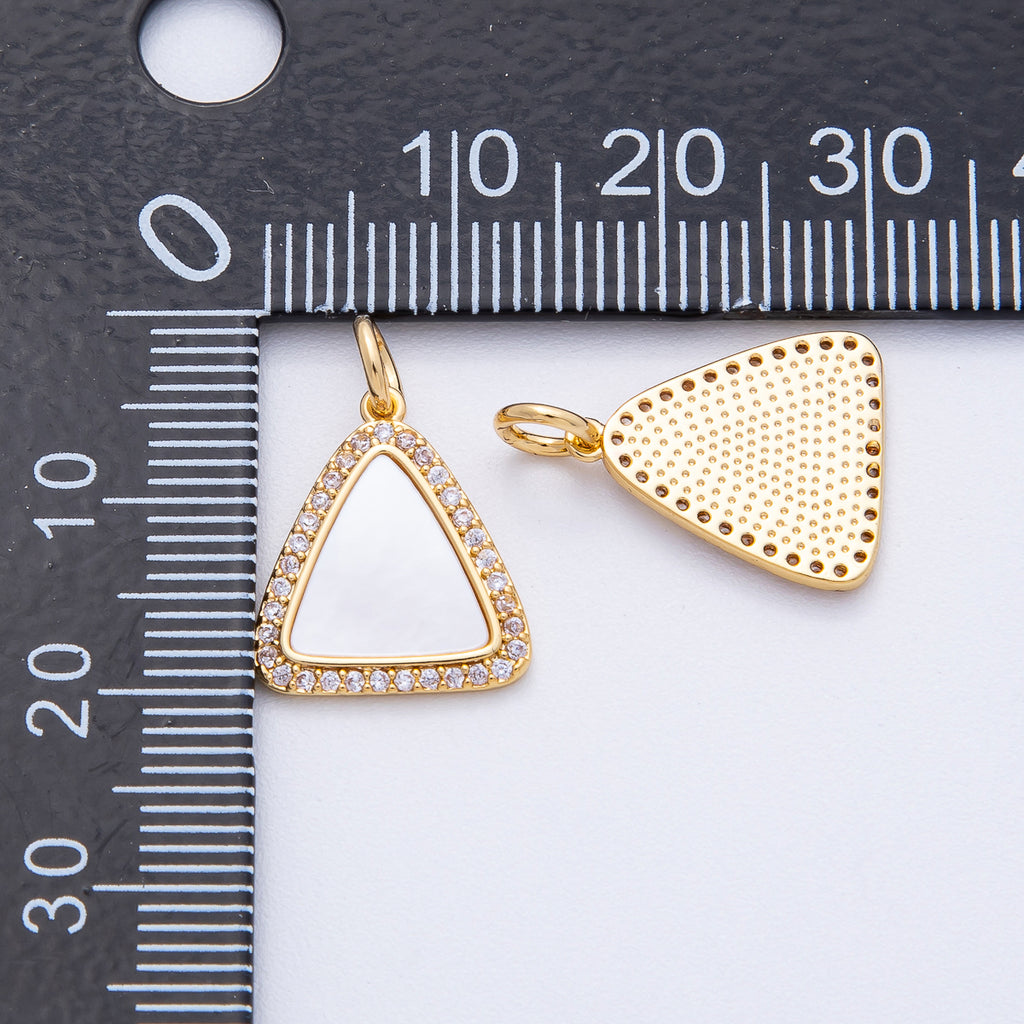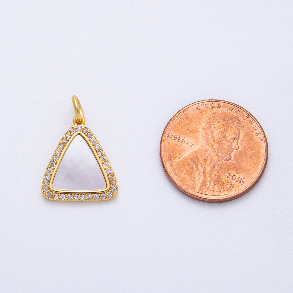 18K Gold Filled 15.5mm Shell Pearl Micro Paved CZ Triangle Charm | AK046