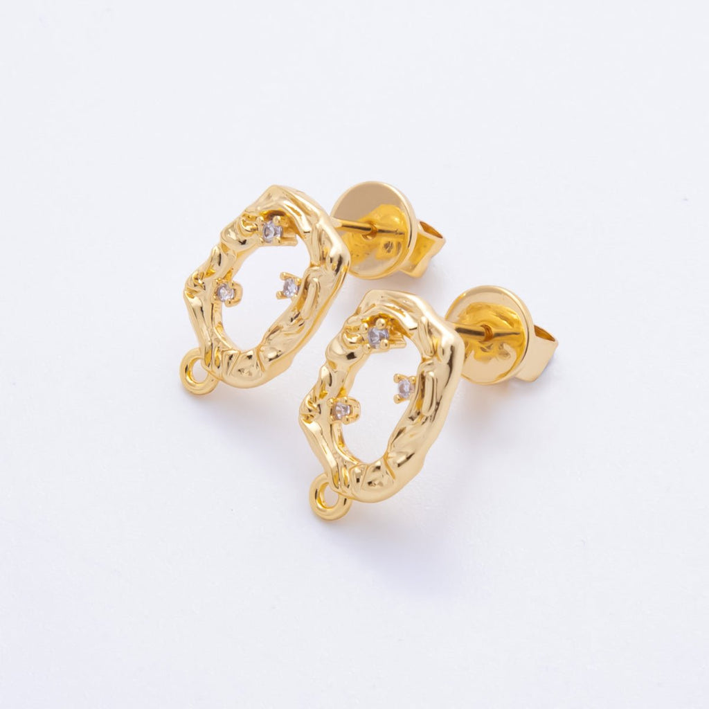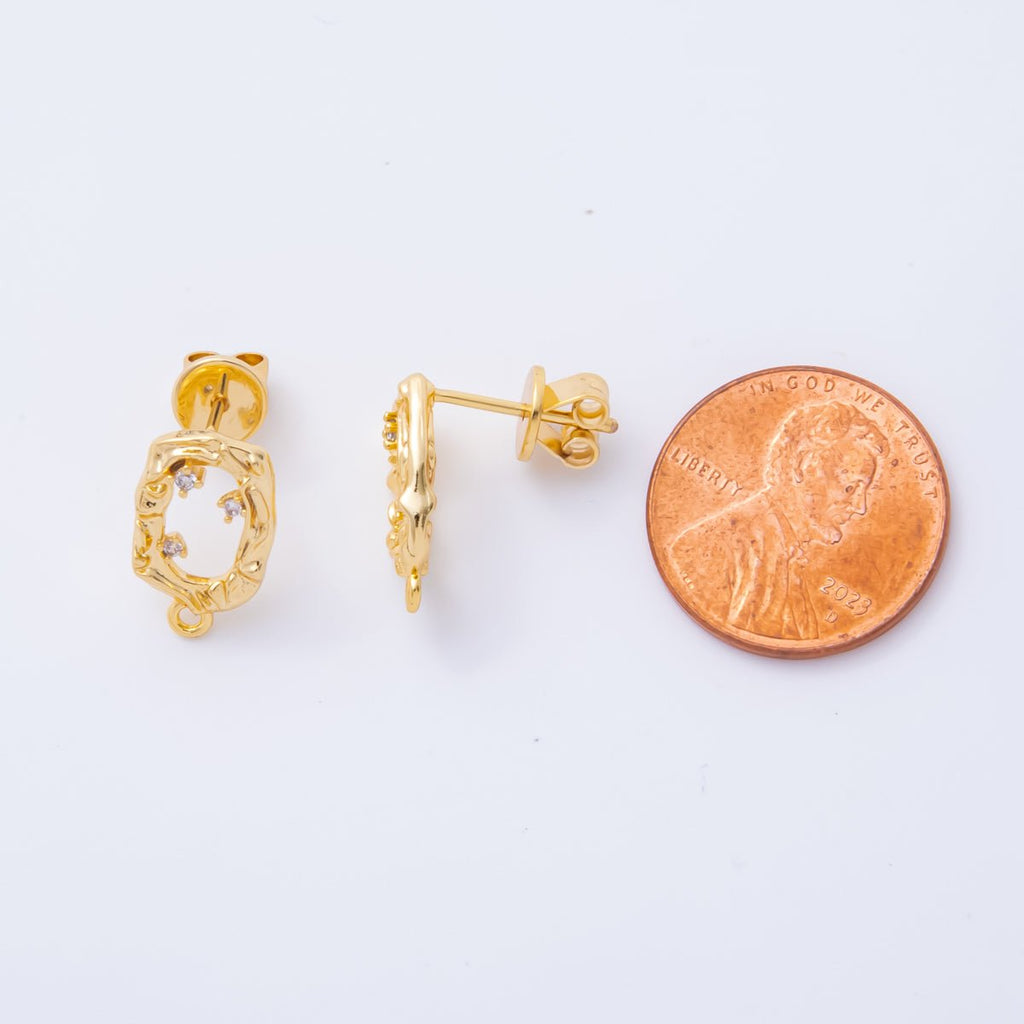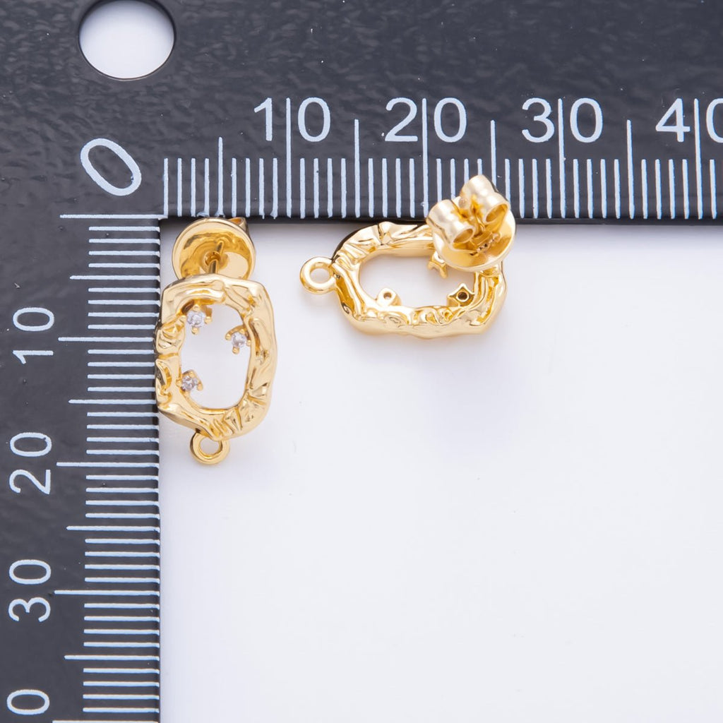 18K Gold Filled 15mm Clear CZ Cluster Open Molten Oval Drop Stud Earrings Findings with Closed Loop for Charm | Z1364