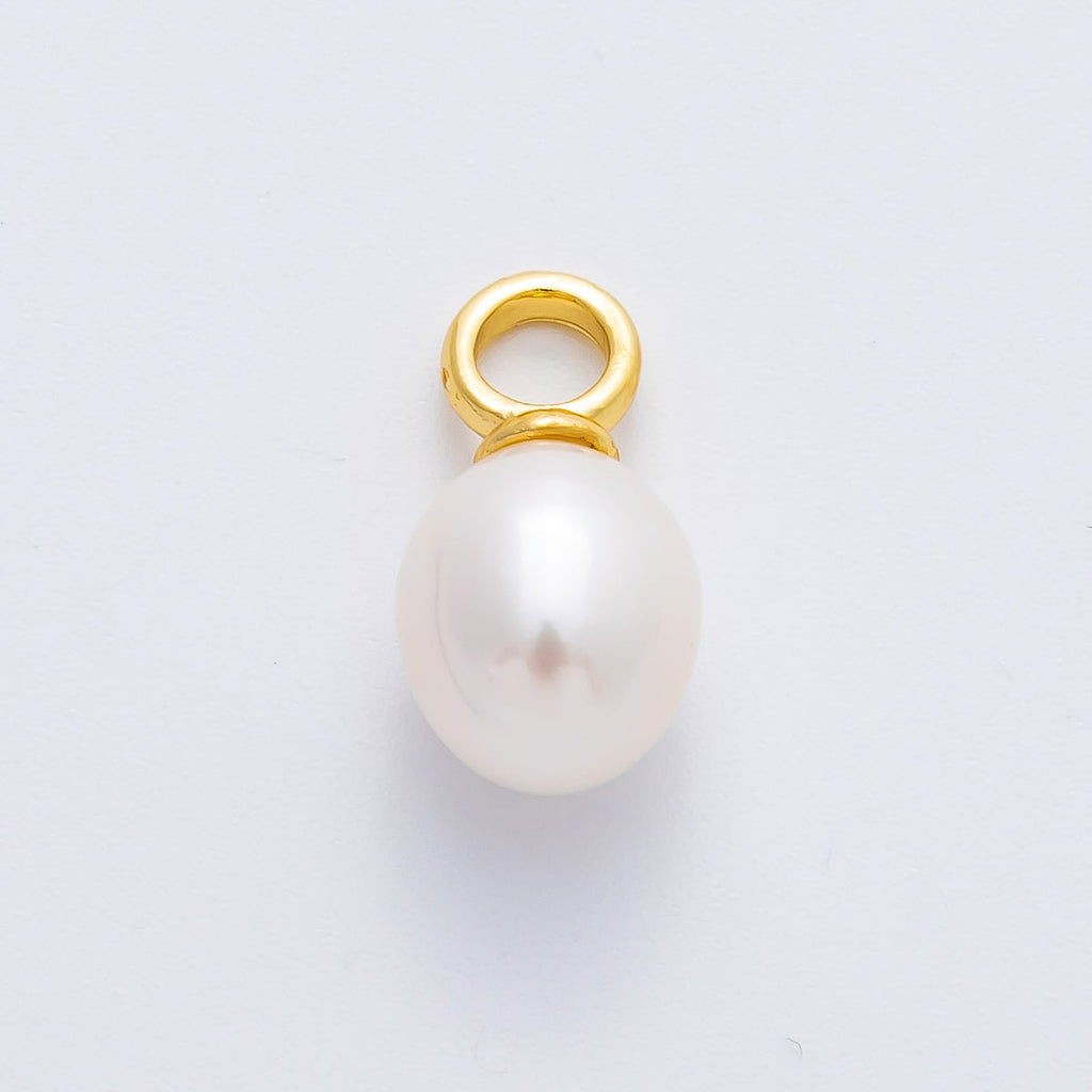 18K Gold Filled 15mm Dainty Shell Pearl Drop Charm | AF630