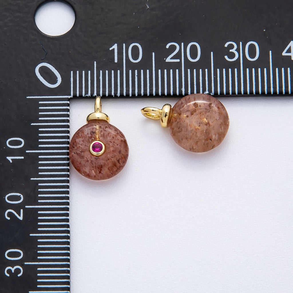18K Gold Filled 15mm Fuchsia CZ Round Strawberry Quartz Gemstone Drop Charm | AF1373
