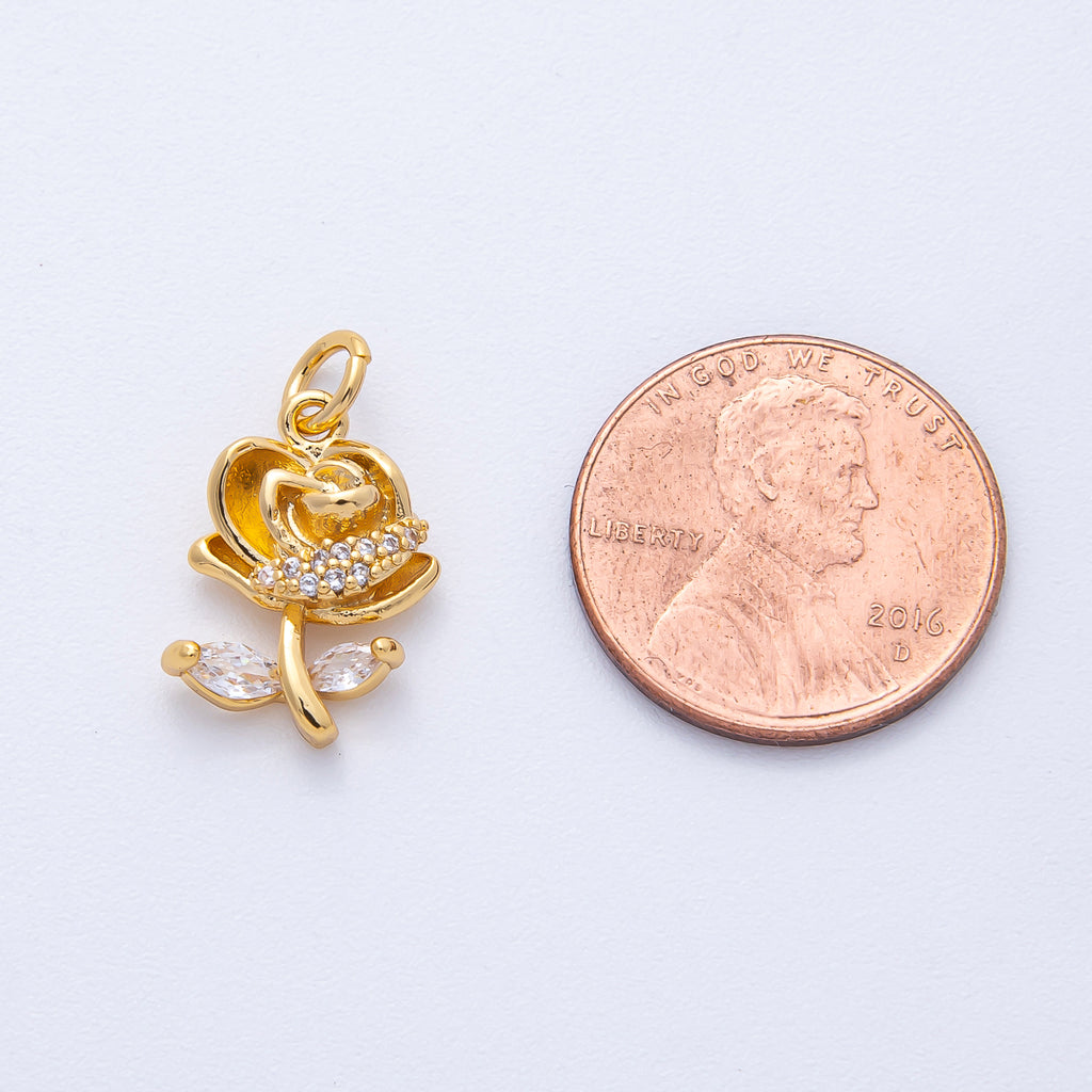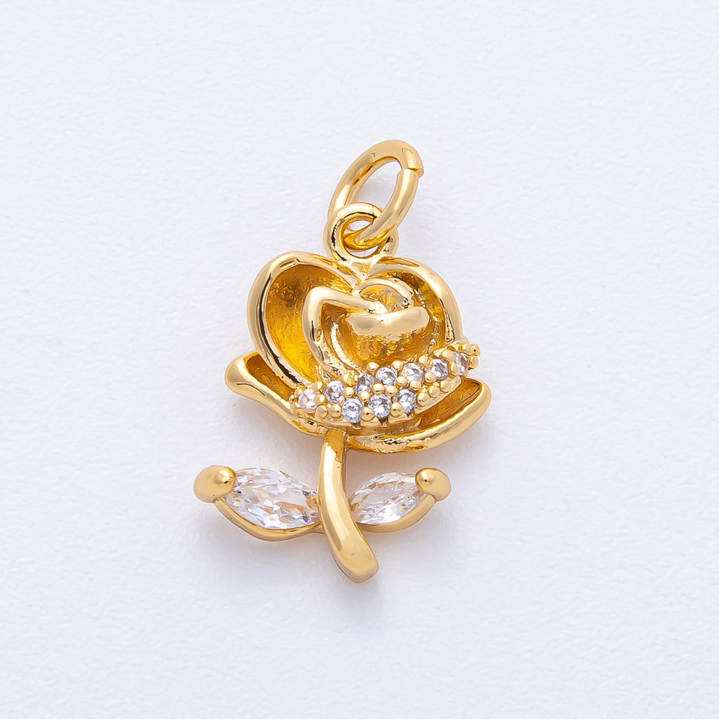 18K Gold Filled 14.5mm Marquise Micro Paved CZ Rose Flower Charm | AK188