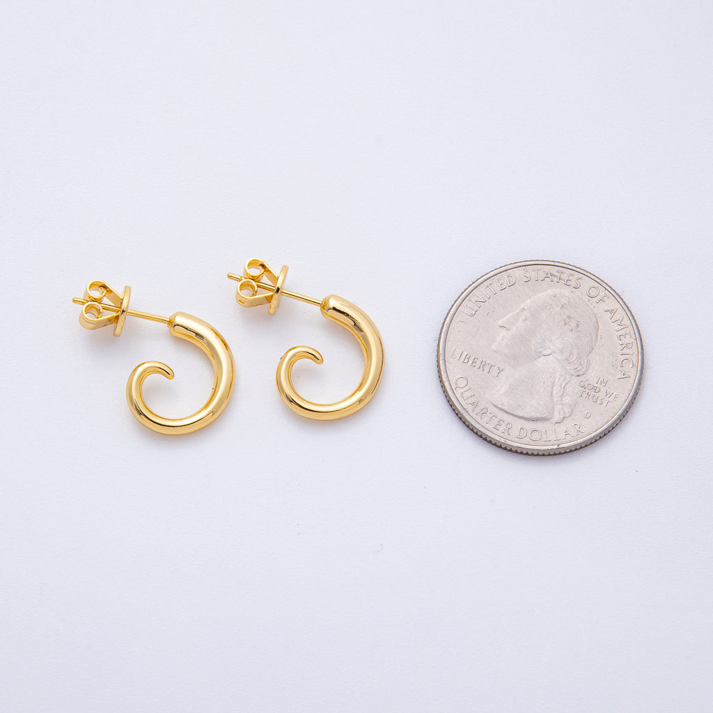 18K Gold Filled 15mm Minimalist Curled C-Shaped Hoop Earrings | AD1667