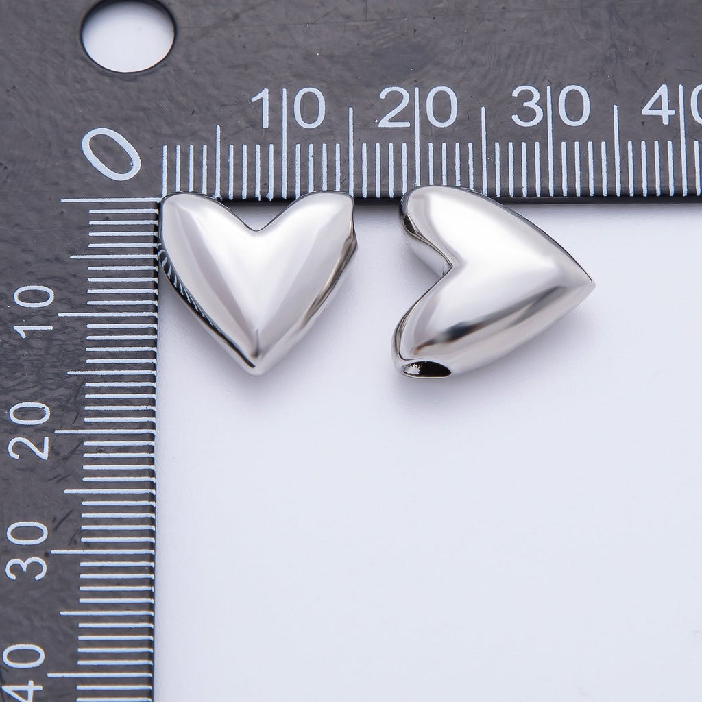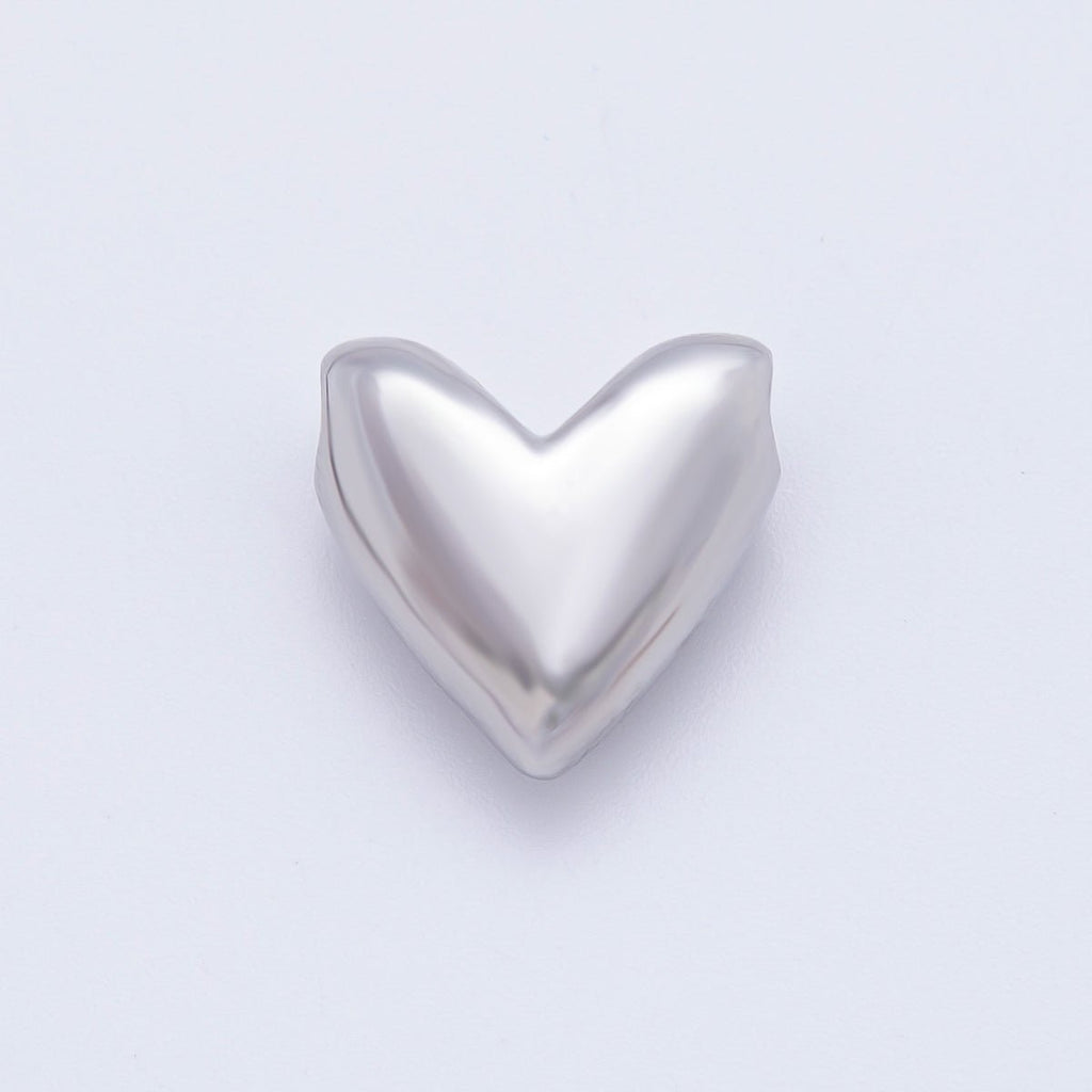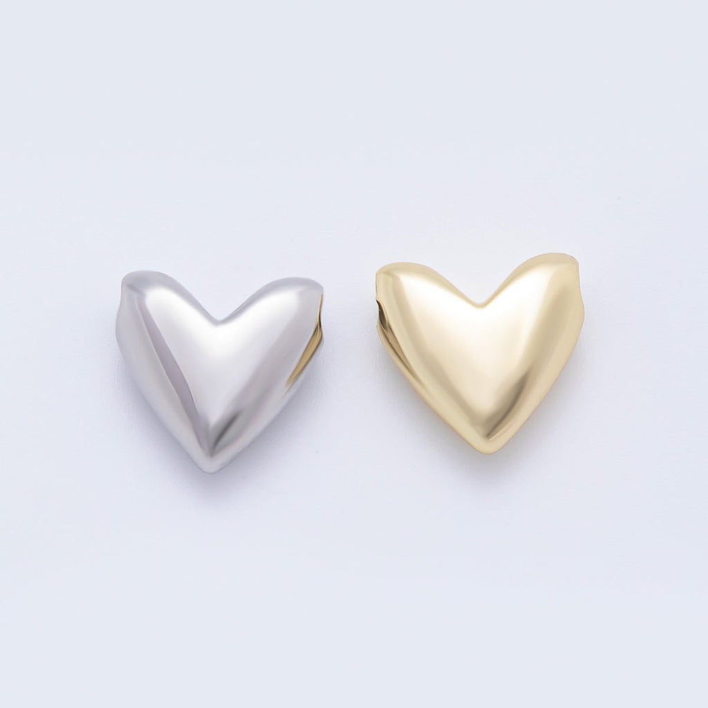 18K Gold Filled 15mm Puffed Heart Spacer Slider Bead in Gold & Silver | AF1092