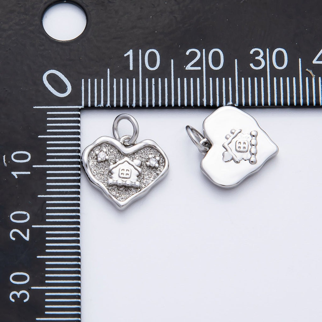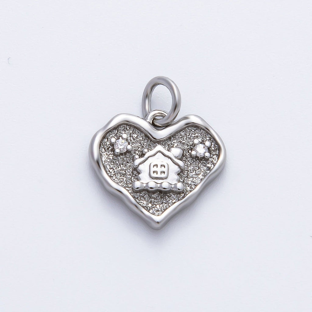 18K Gold Filled 15mm CZ House Home Molten Heart Charm in Gold & Silver | AF1358