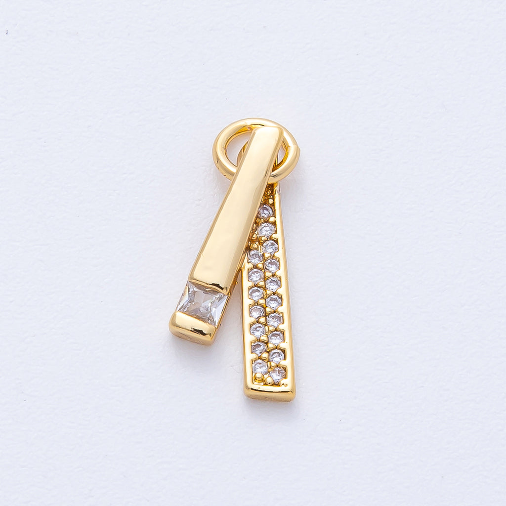18K Gold Filled 16mm Clear Micro Paved CZ Zipper Pull Ribbon Tie Bar Minimalist Charm | AK183