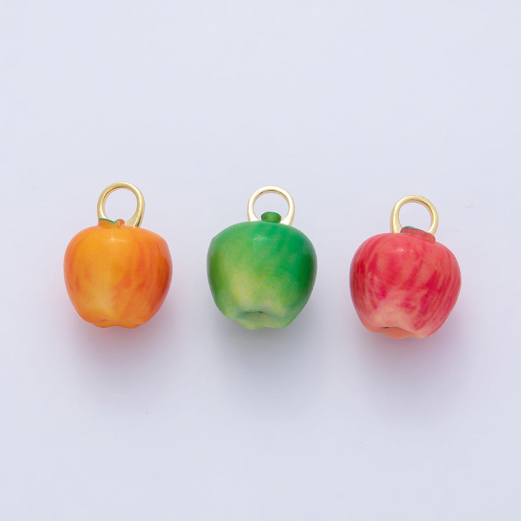 18K Gold Filled 16mm Green, Orange, Red Ceramic Apple Fruit Charm | AF1439 AF1440