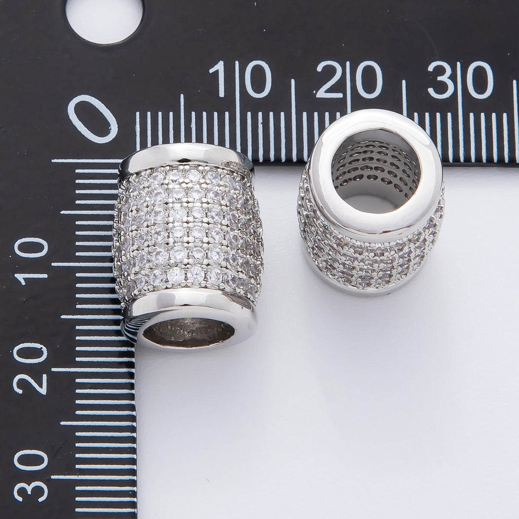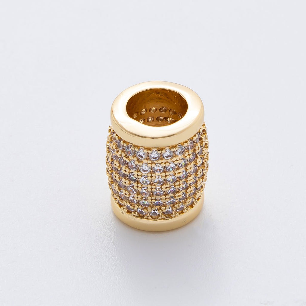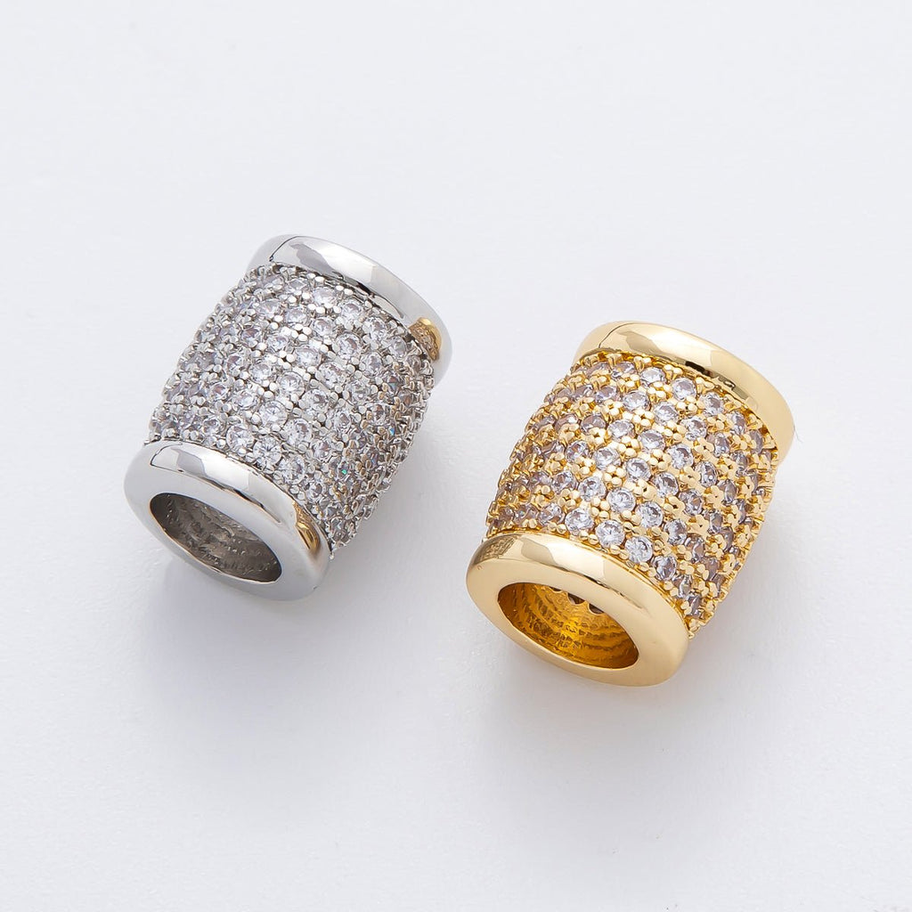 18K Gold Filled 16mm Micro Paved CZ Big Barrel Tube Slider Bead Spacer in Gold & Silver | AF-A1066