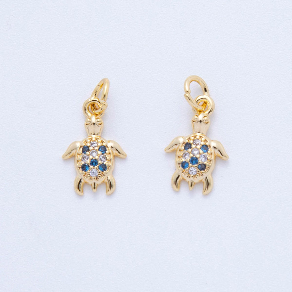 18K Gold Filled 17mm Micro Paved CZ Mini Sea Turtle Charm | AF819