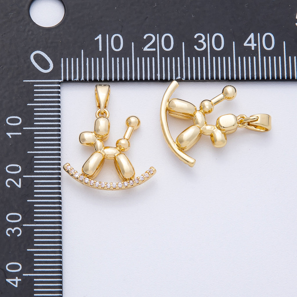 18K Gold Filled 17mm Balloon Dog Micro Paved CZ 3D Multidimensional Pendant | AF1226