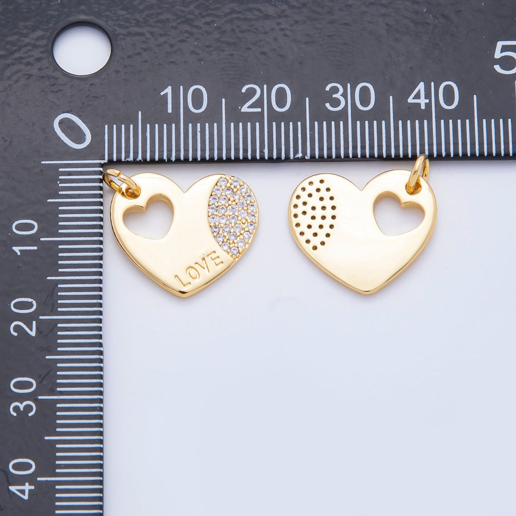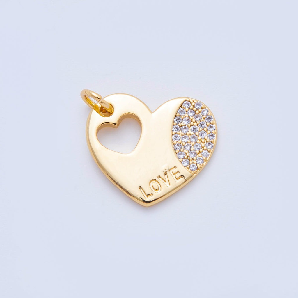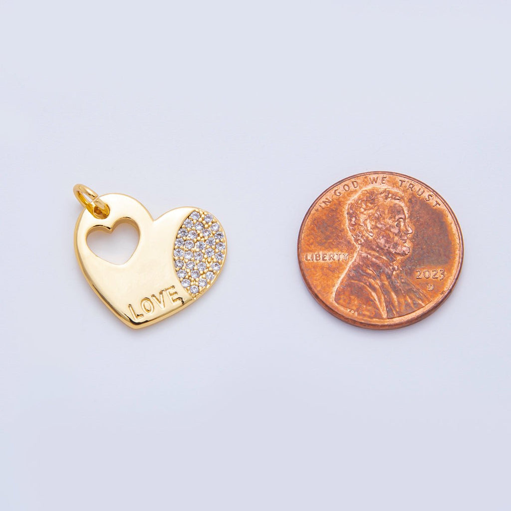 18K Gold Filled 18mm Micro Paved CZ Open Heart in Heart with Love Transcript Charm | N601