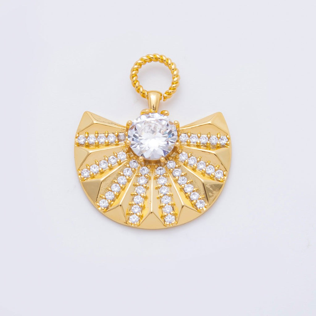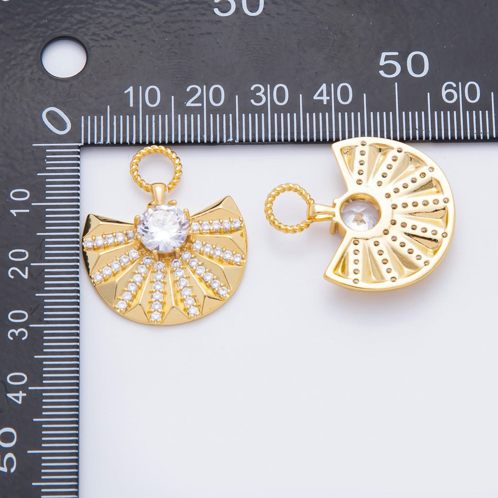 18K Gold Filled 18mm Micro Paved & Round CZ Wide Luxury Fan-Shaped Charm | N605