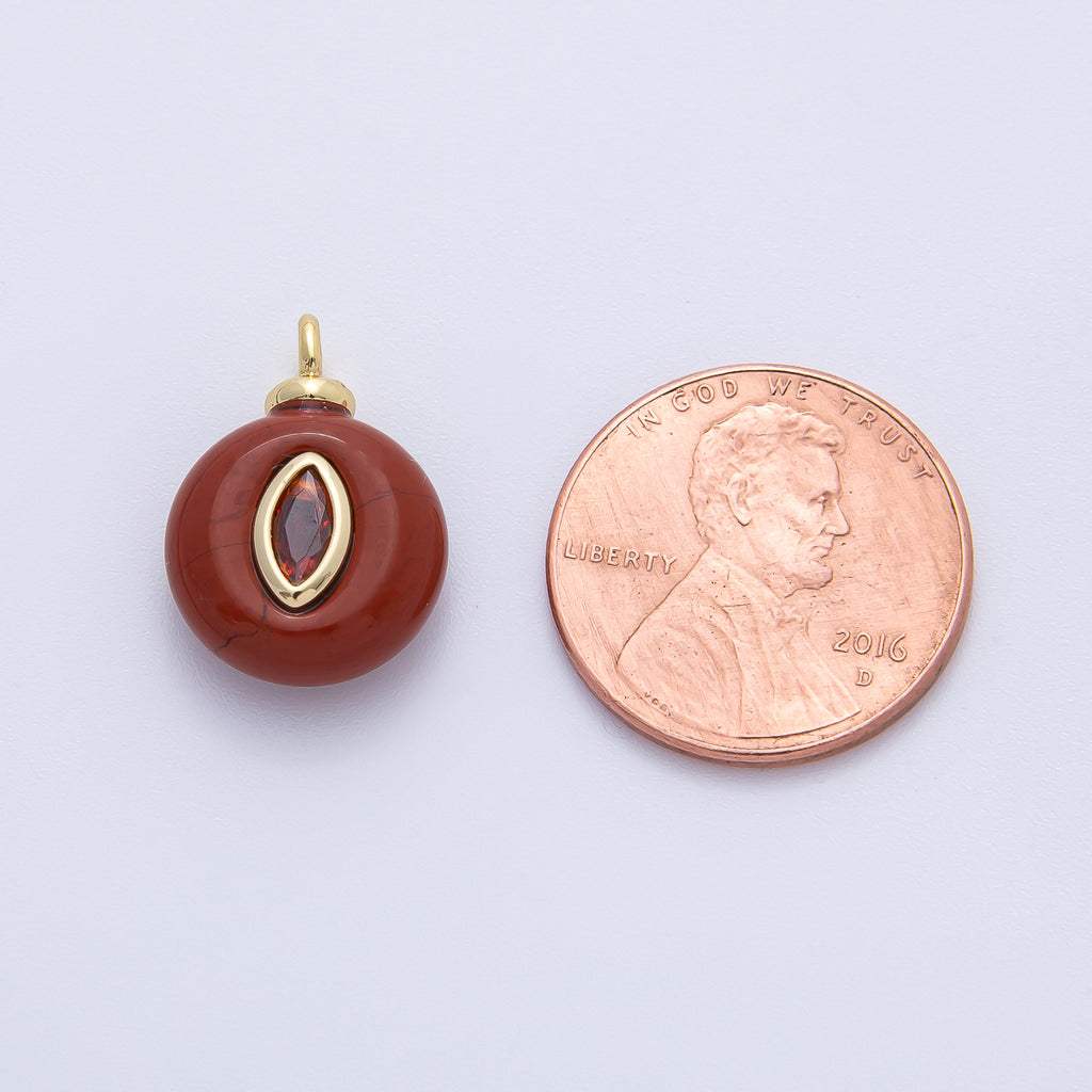 18K Gold Filled 18mm Red CZ Oval Flush Setting Round Ruffle Gemstone Drop Charm | AF1387