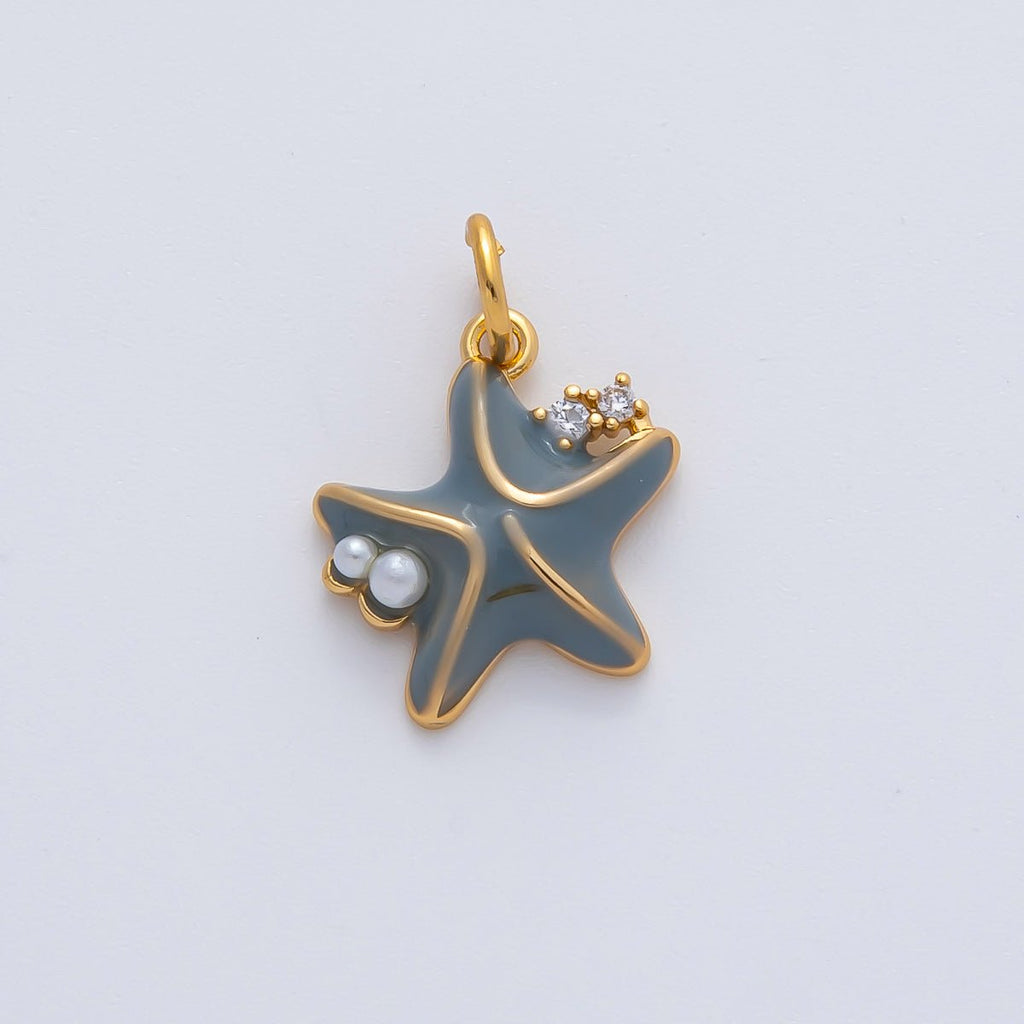 18K Gold Filled 18mm Shell Pearl CZ Grey Starfish Charm | AF1428