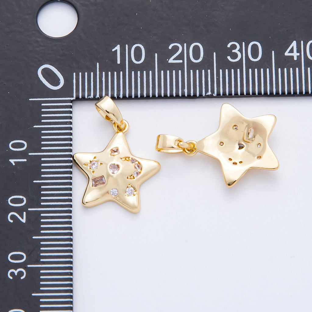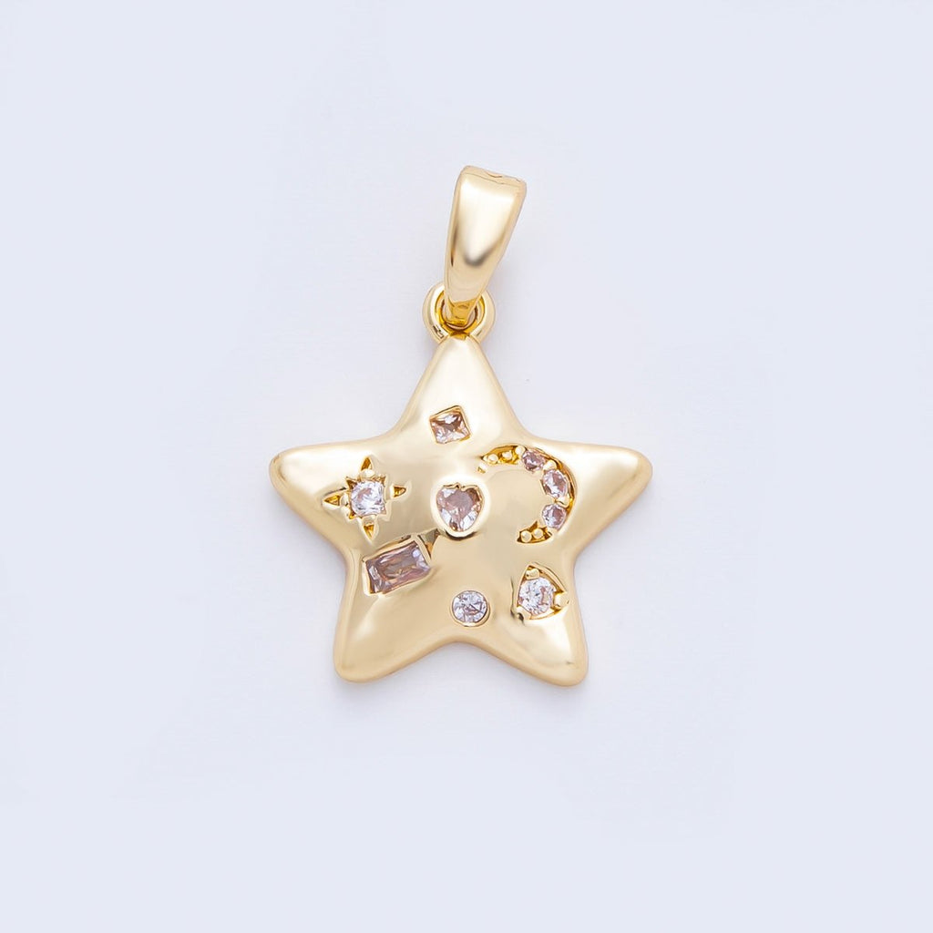 18K Gold Filled 20mm Mix Shaped CZ Star Celestial Theme Pendant | AF-A1125
