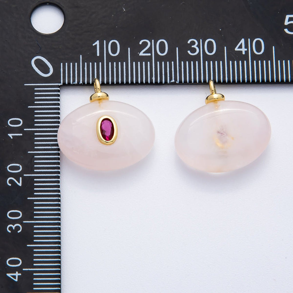 18K Gold Filled 20mm Red CZ Oval Accent Pink Quartz Gemstone Drop Charm | AF1321