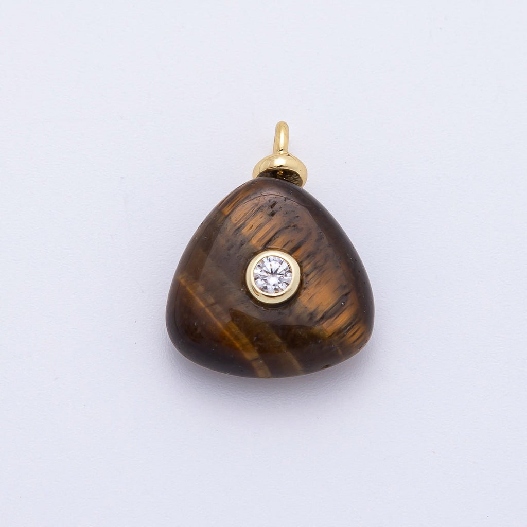 18K Gold Filled 20mm Round CZ Center Triangle Tiger Stone Gemstone Drop Charm | AF1317