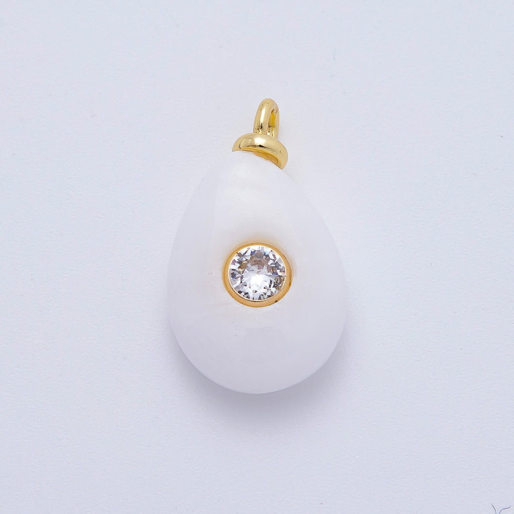 18K Gold Filled 23mm Round CZ Centerpoint Baroque White Jade Gemstone Drop Charm | AF1322