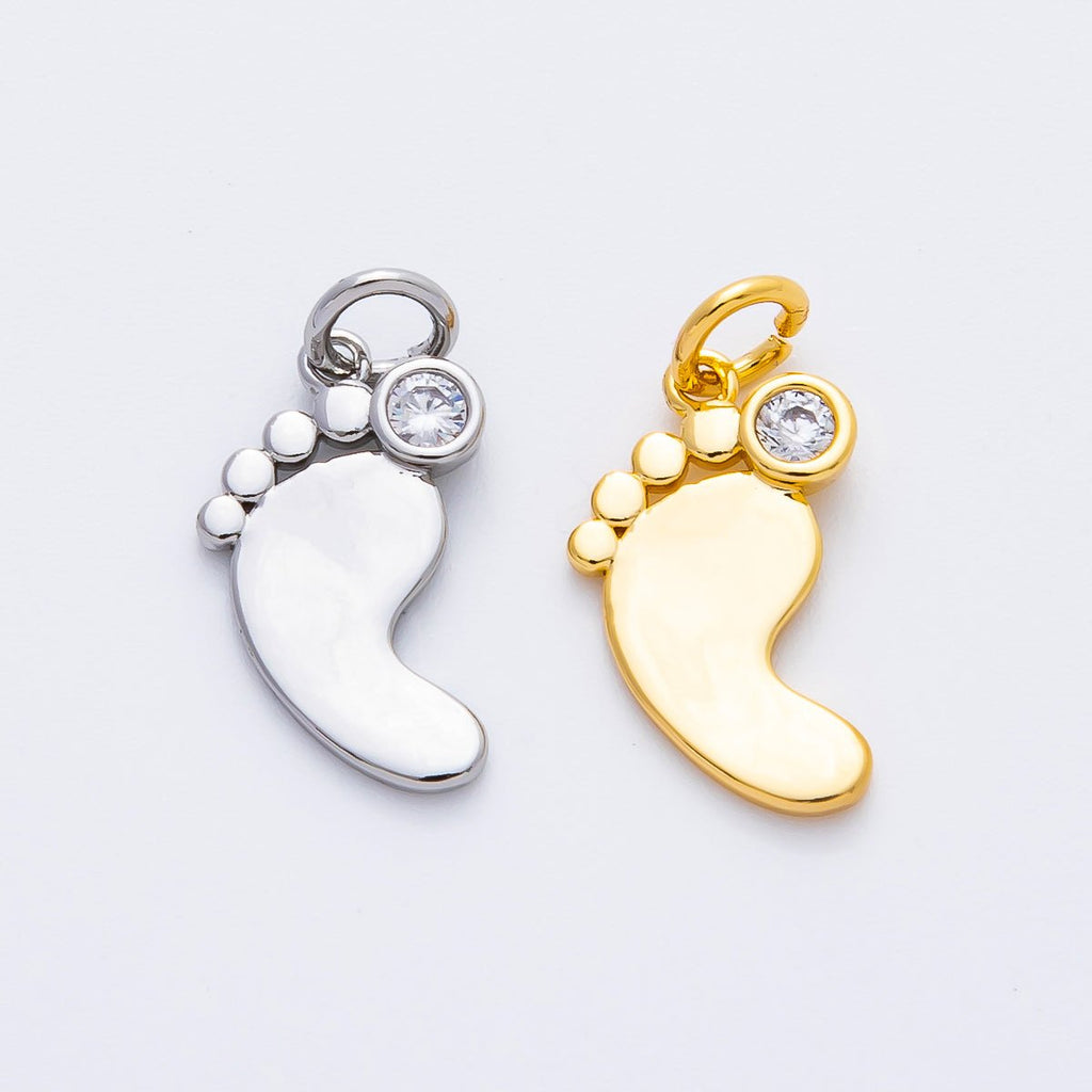 18K Gold Filled 20mm Round CZ Baby Feet Charm in Gold & Silver | AF1362