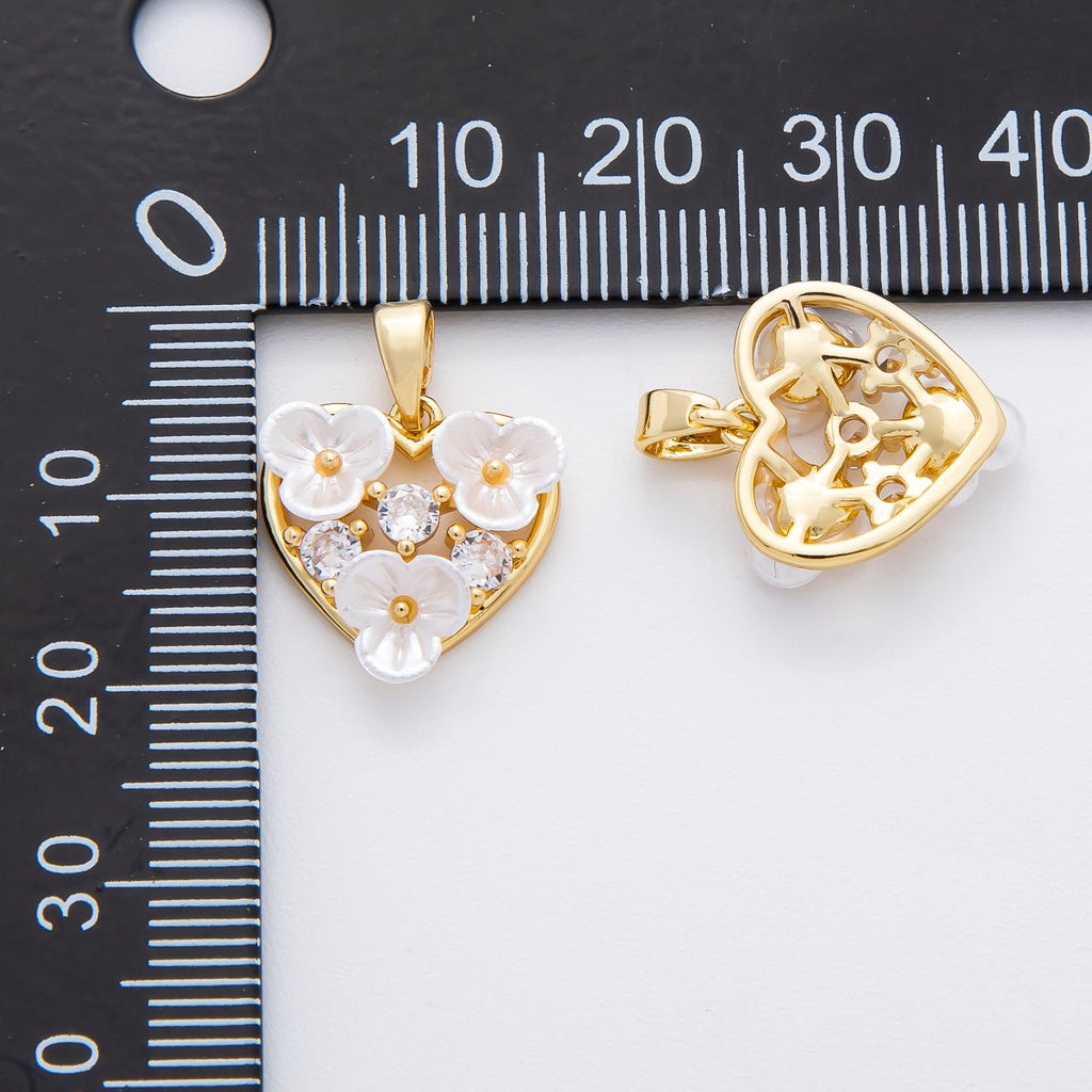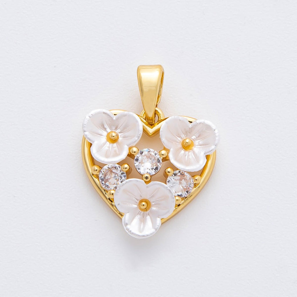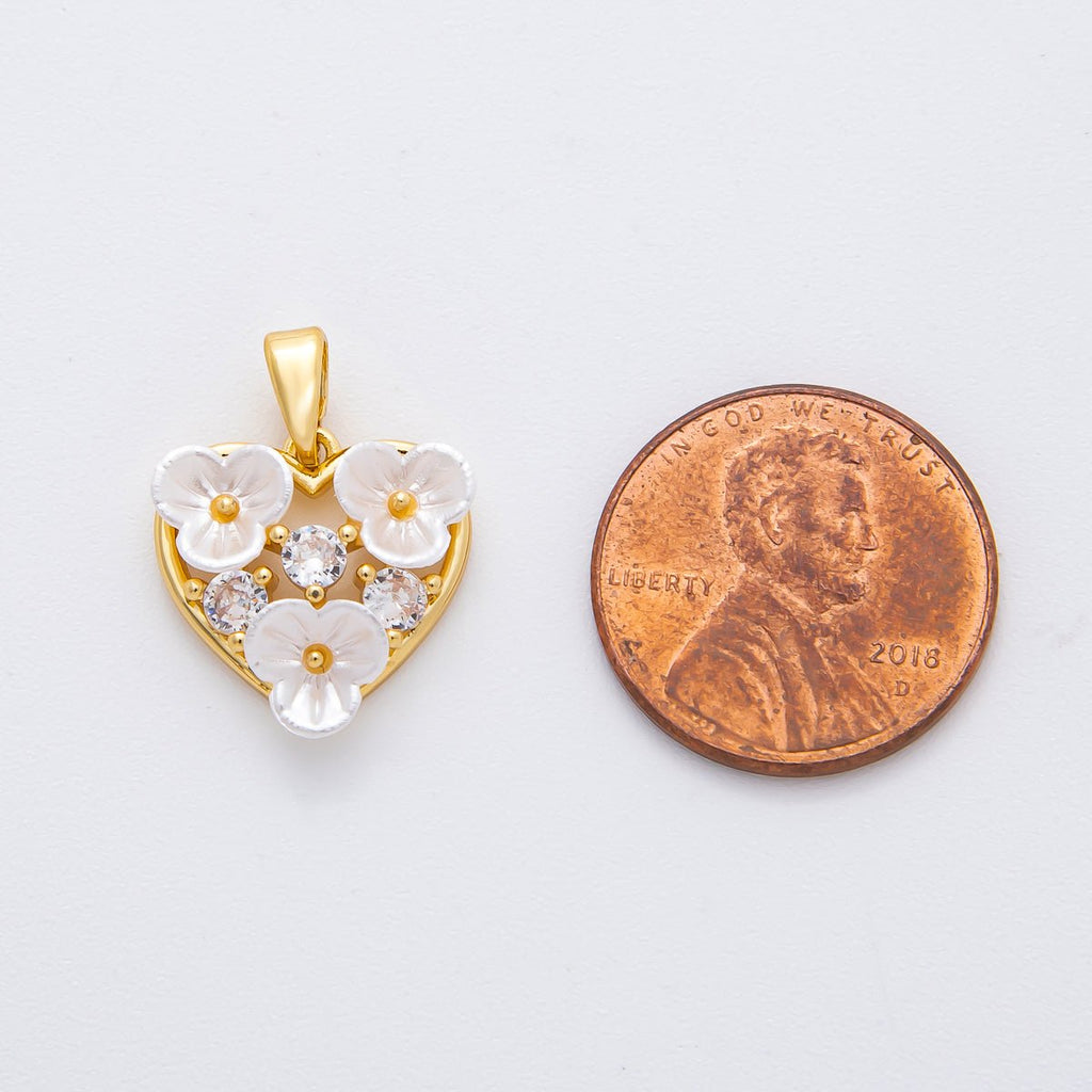 18K Gold Filled 20mm Round CZ Shell Pearl Lovely Pond Blooming Flower Pendant | AF-A1138
