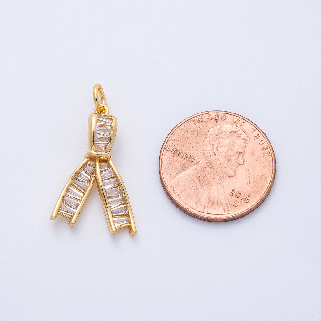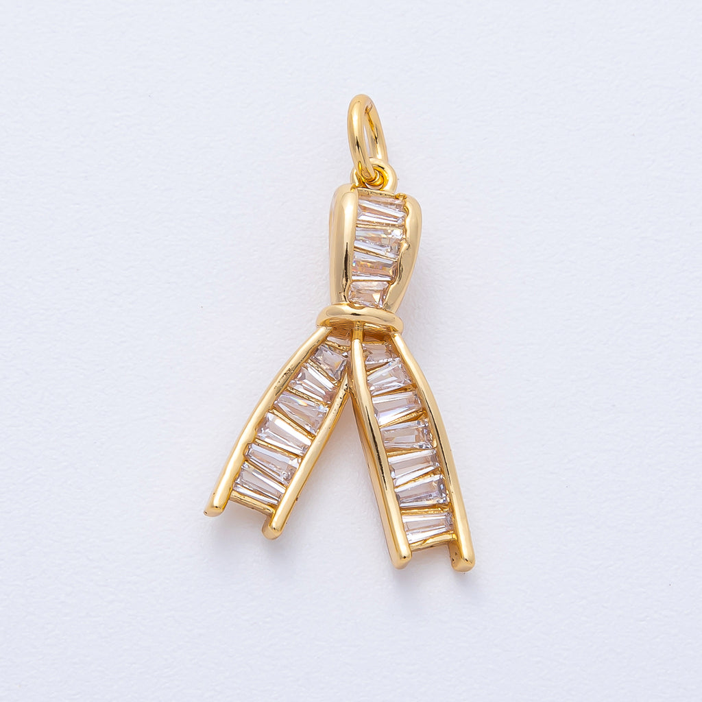 18K Gold Filled 21mm Clear Baguette CZ Ribbon Knot Charm | AK189