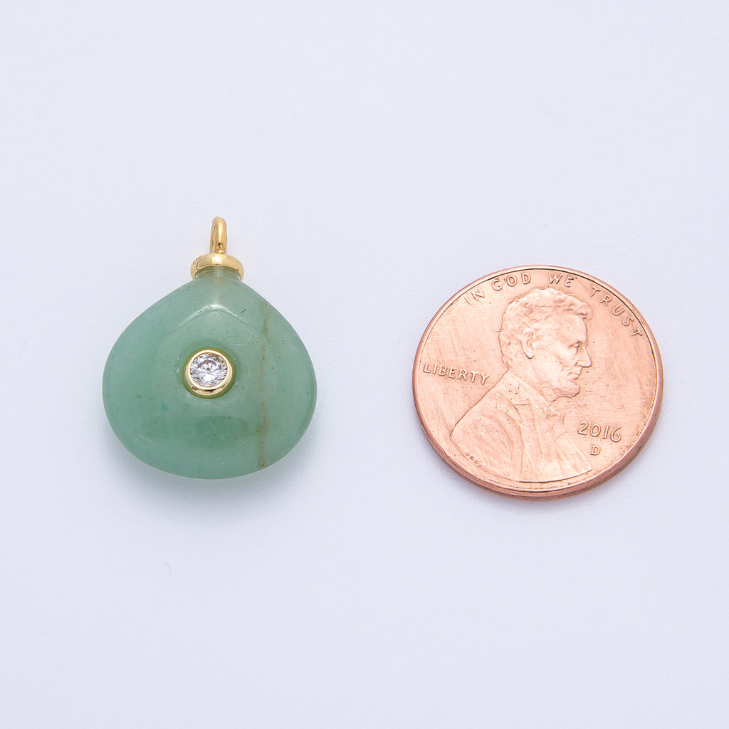 18K Gold Filled 21mm Clear CZ Flushed Round Green Aventurine Gemstone Drop Charm | AF1392