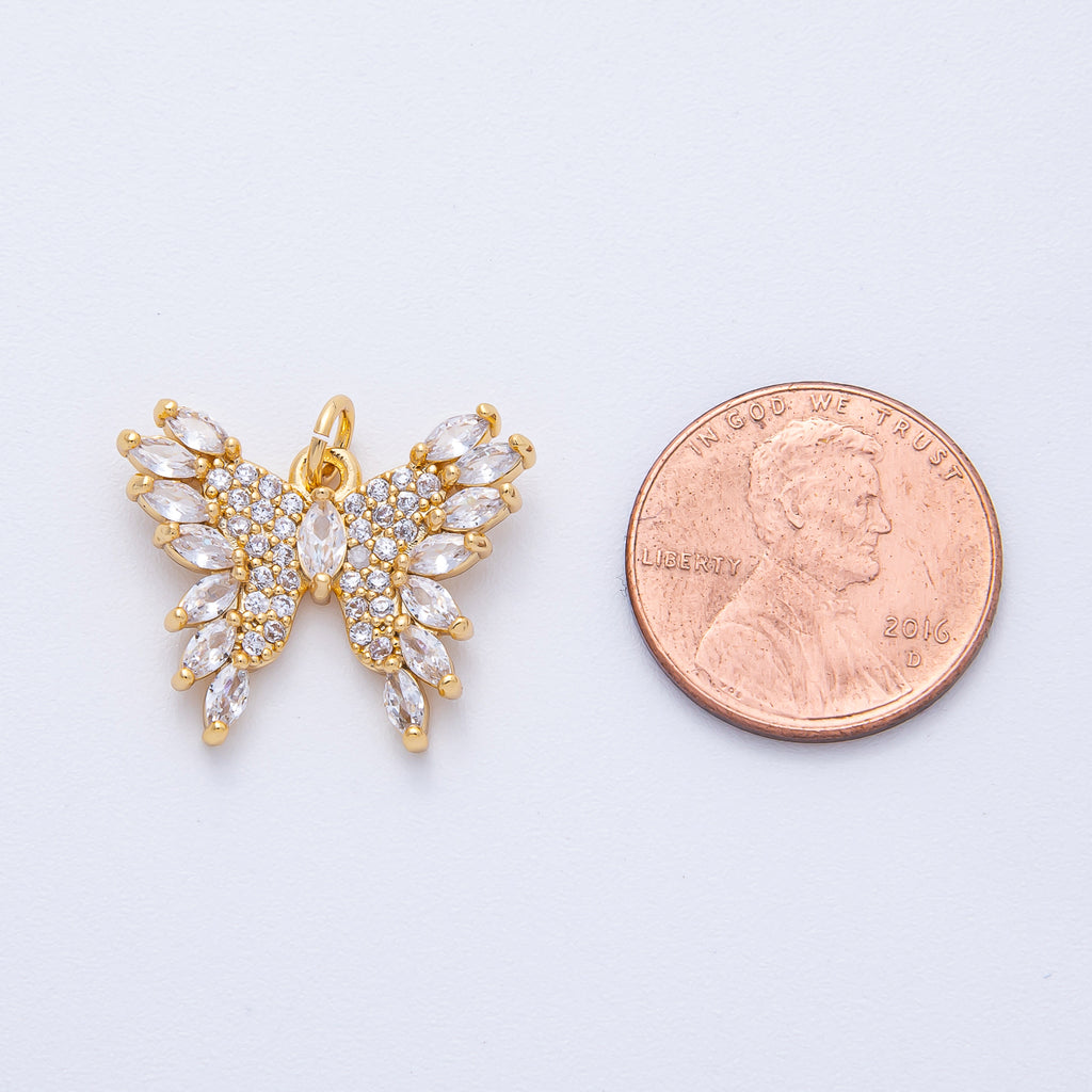 18K Gold Filled 21mm Marquise Micro Paved CZ Butterfly Mariposa Animal Charm | AK182