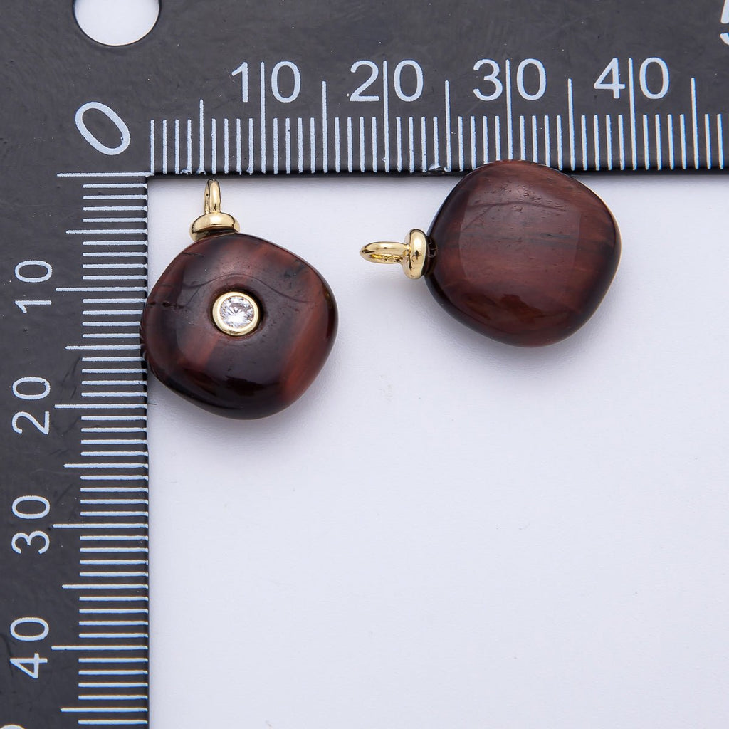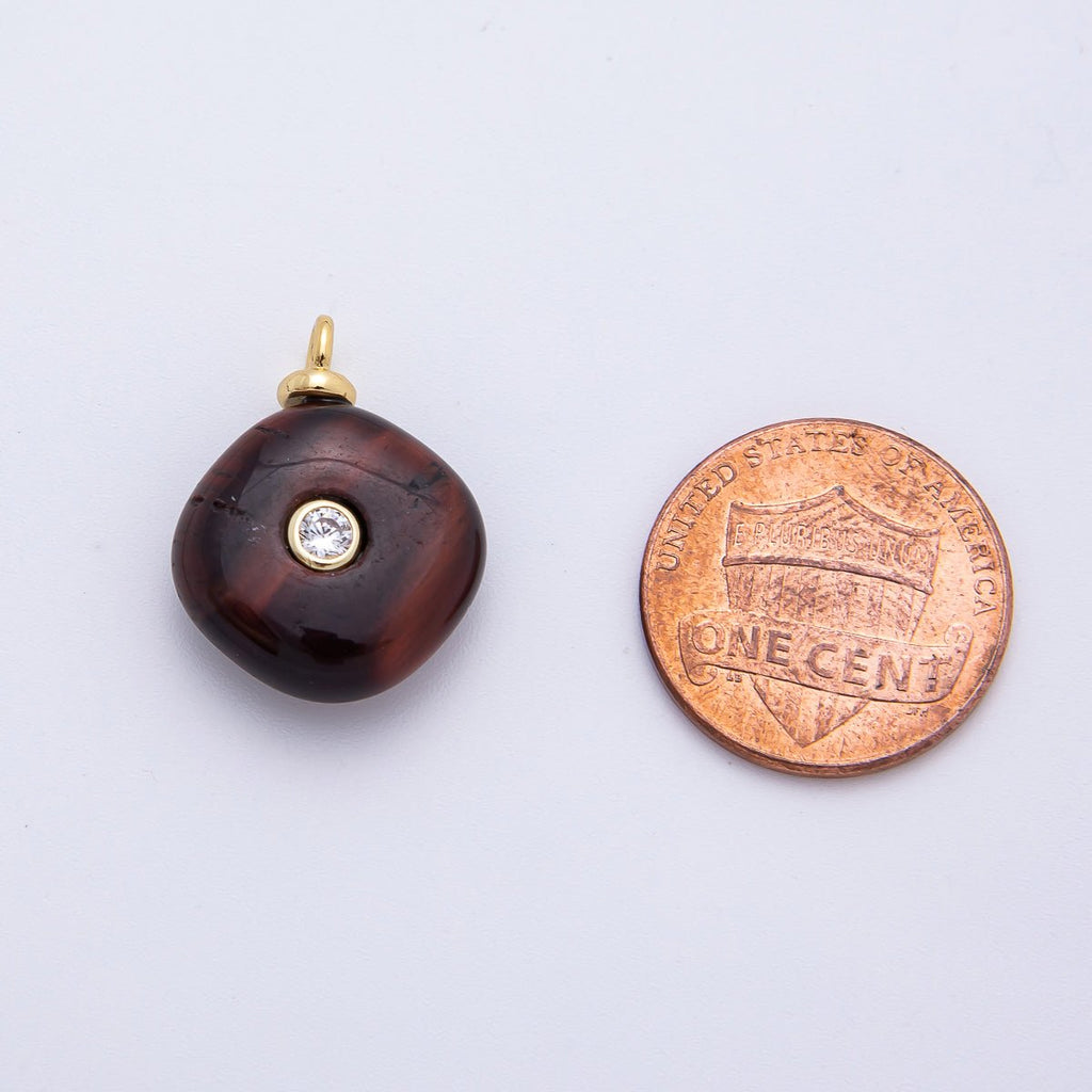 18K Gold Filled 21mm Round CZ Center Rhombus Rhodochrosite Gemstone Drop Charm | AF1318