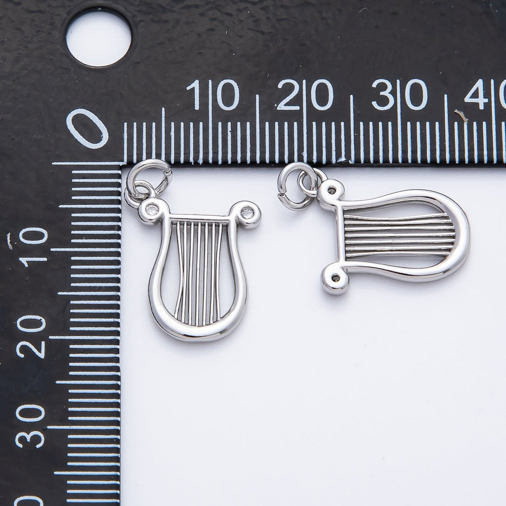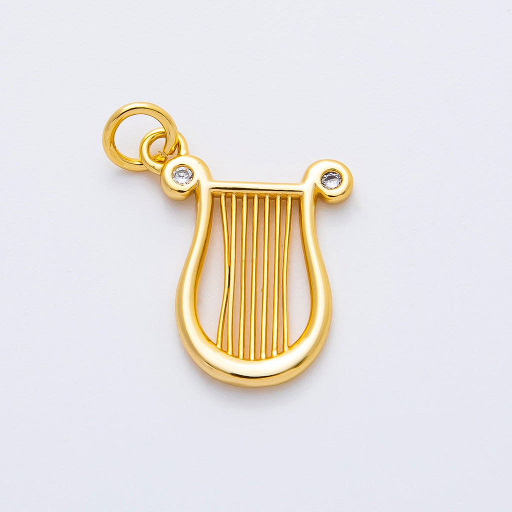18K Gold Filled 21mm CZ Harp Musical Instrument Charm in Gold & Silver | AF1357