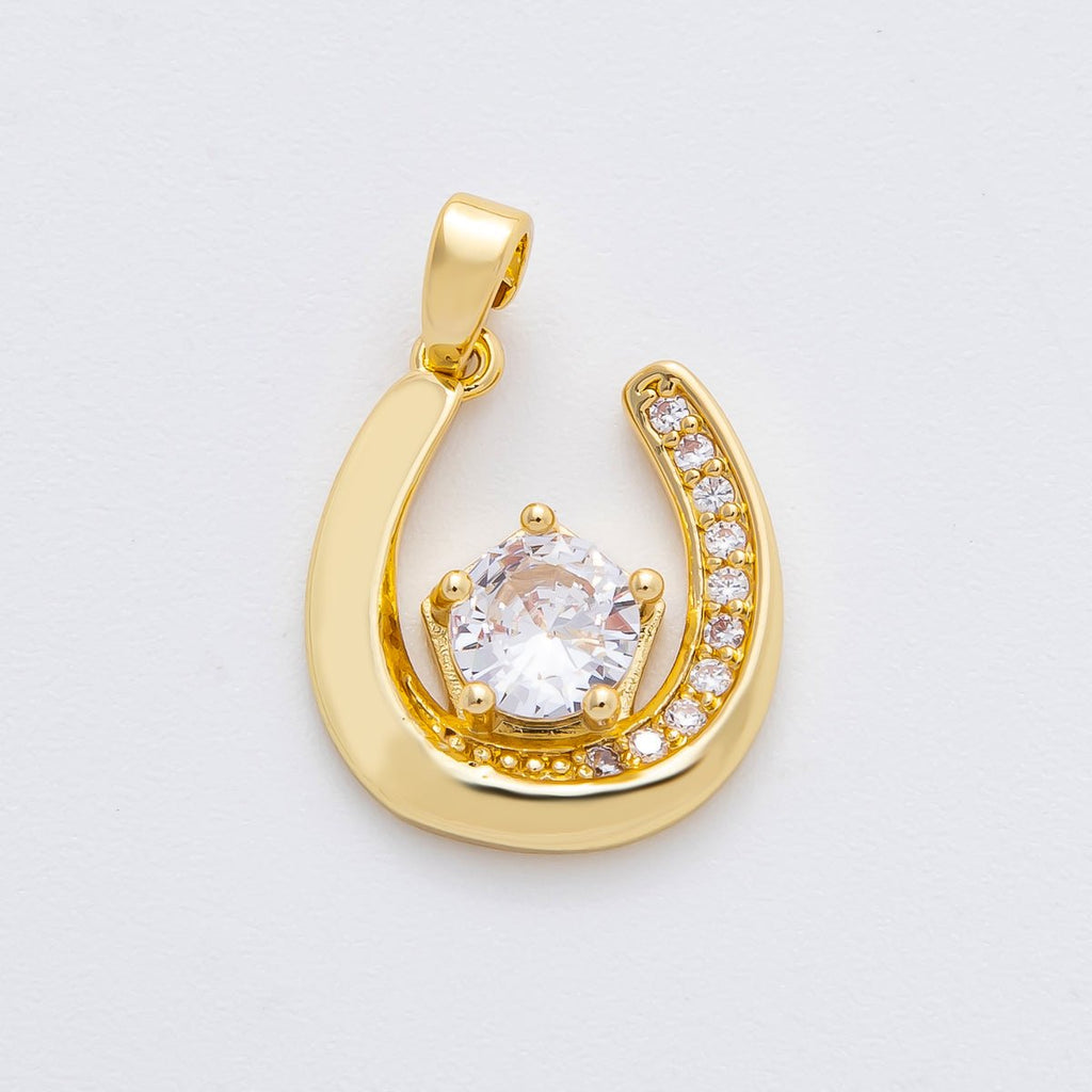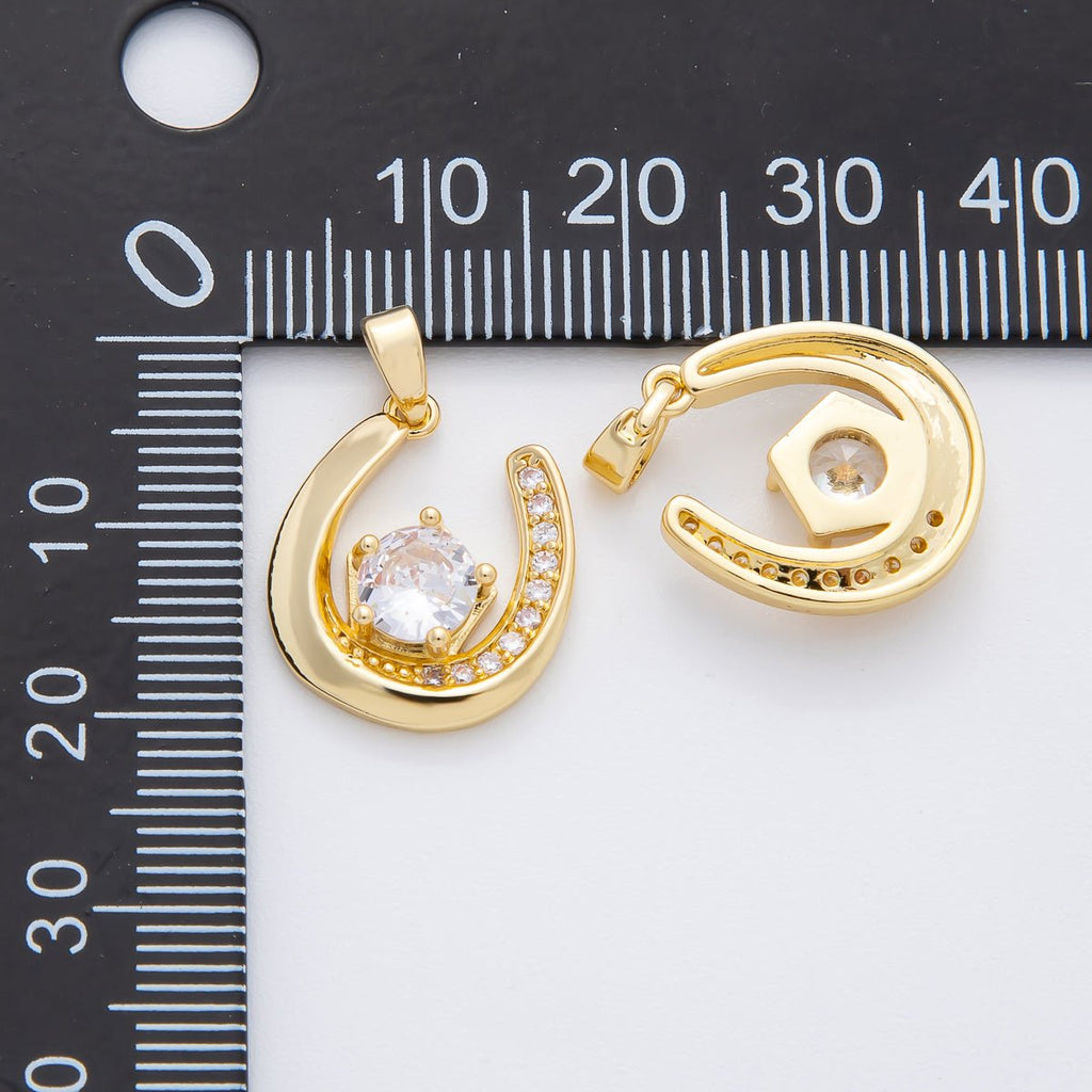 18K Gold Filled 22.5mm Micro Paved CZ Lucky Charm Horseshoe Pendant | AF-A1141