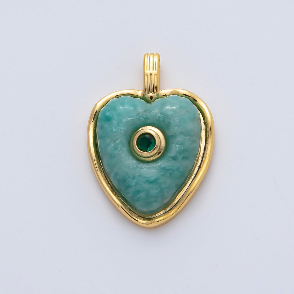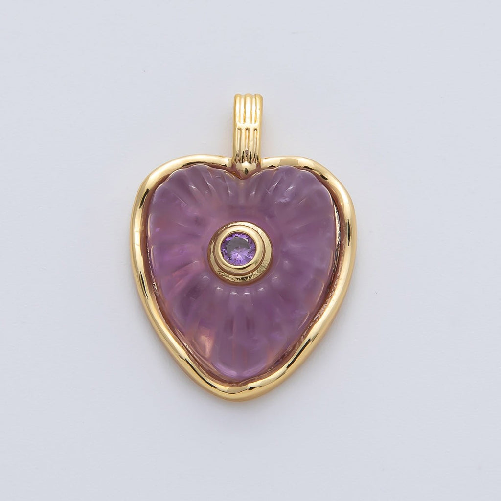 18K Gold Filled 23mm Amazon, Amethyst, Lapis Gemstone Sunburst Heart Pendant | AF1161 ~ AF1163