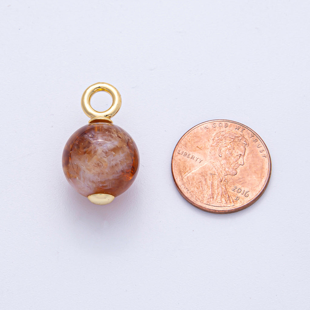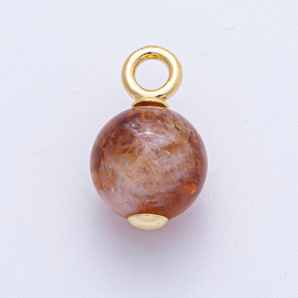 18K Gold Filled 24.5mm Citrine Round Gemstone Drop Charm | AK049