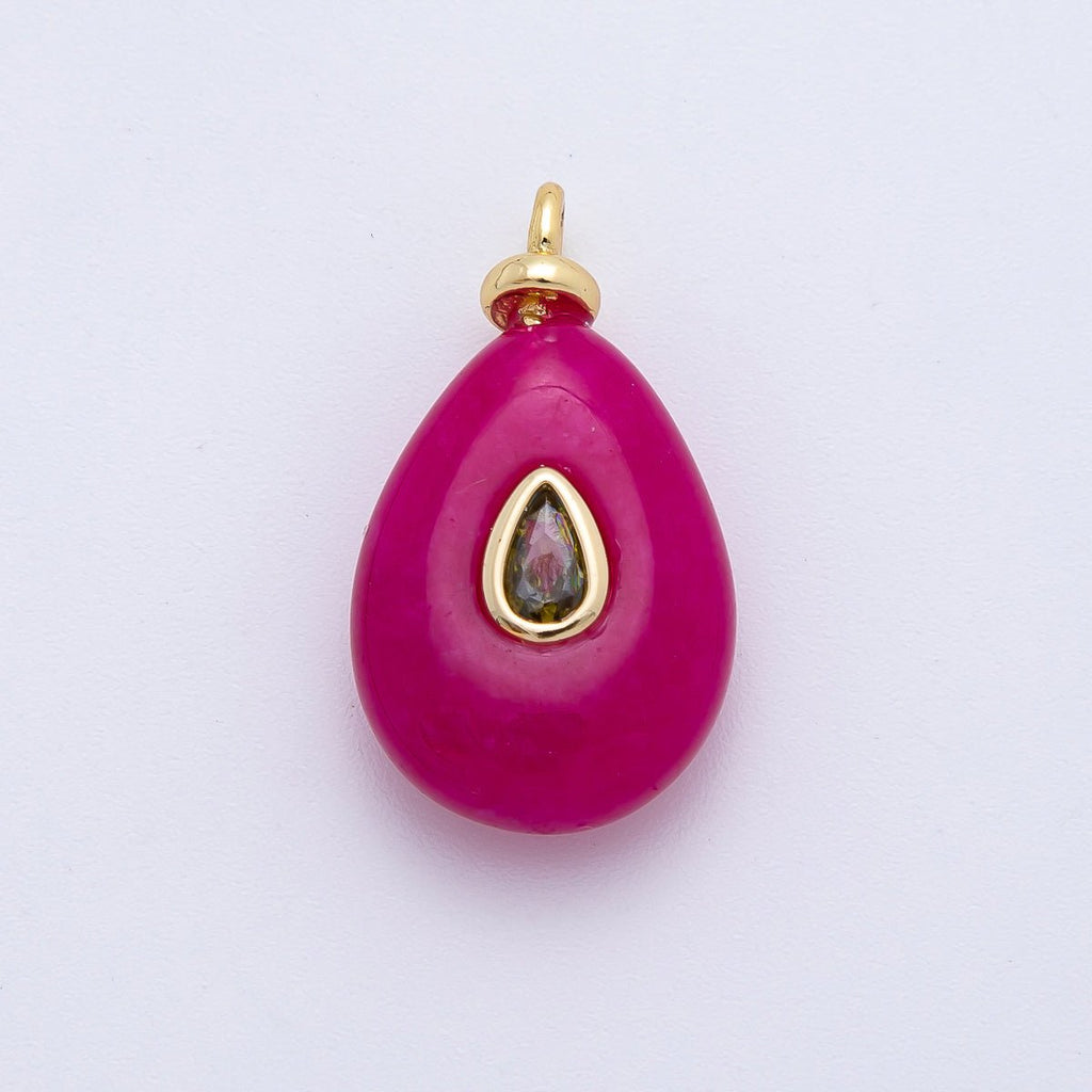 18K Gold Filled 23mm Fuchsia CZ Teardrop Accent Crimson Lake Jade Gemstone Drop Charm | AF1323