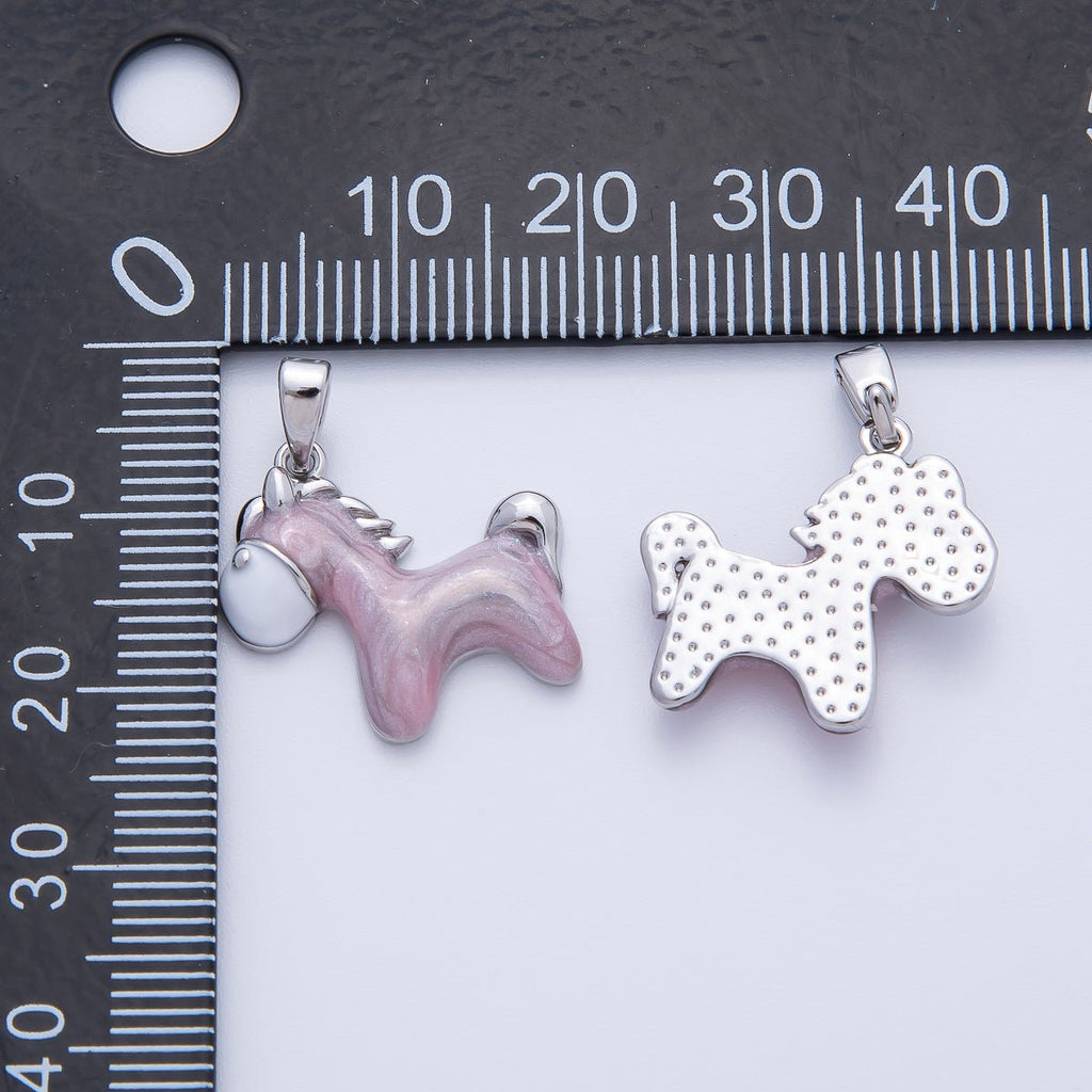 18K Gold Filled 23mm Purple, Pink Enamel Pony Horse Animals Pendant | AF1151 AF1152